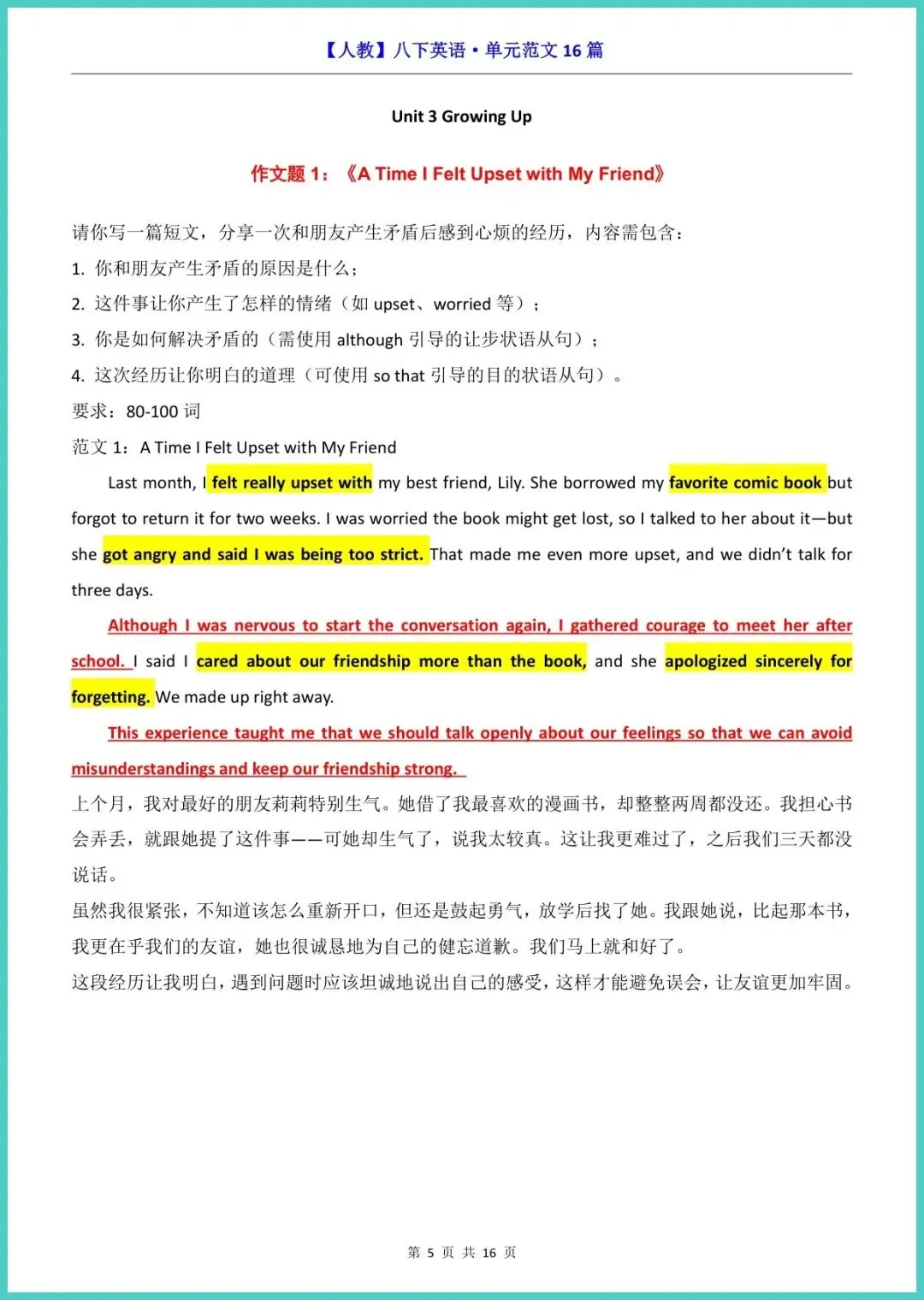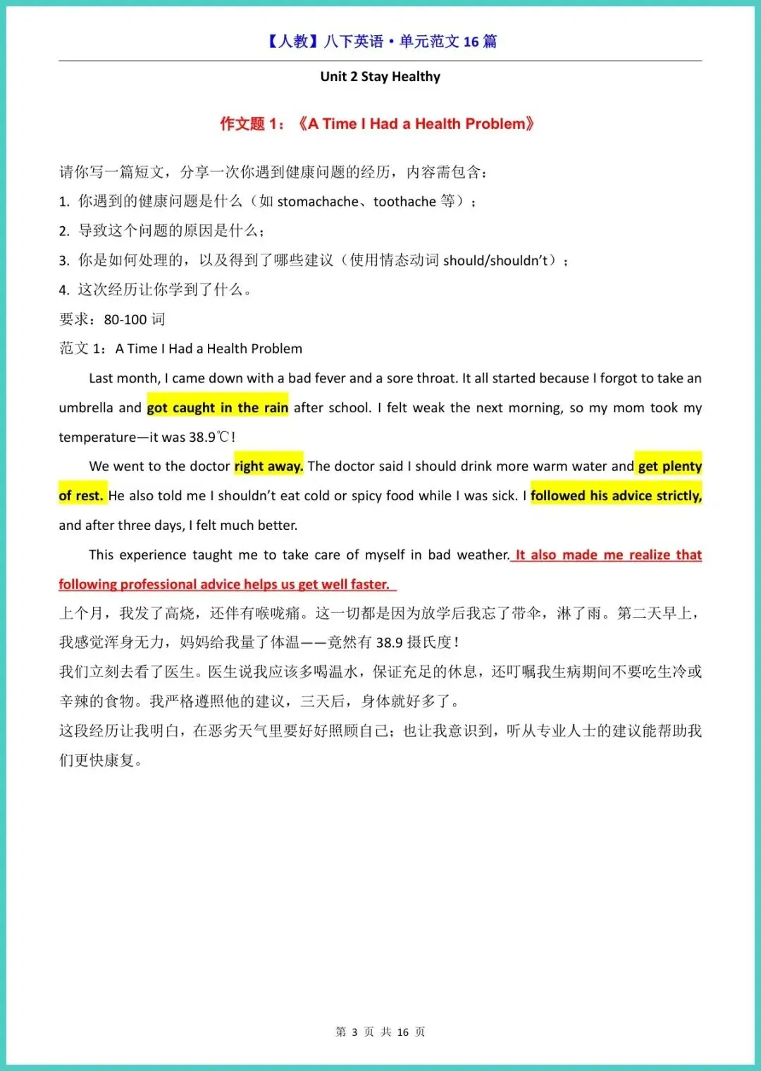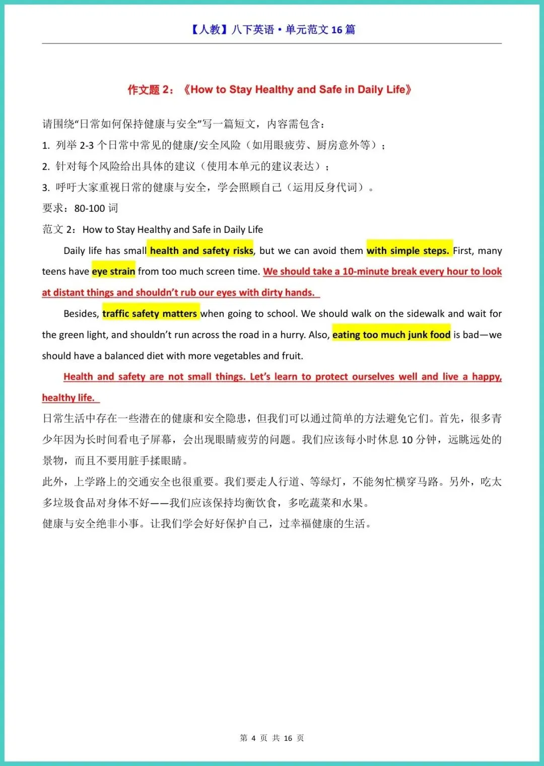 【免费下载】八年级(下)英语作文范文16篇(人教版) | PDF完整高清电子版可打印
