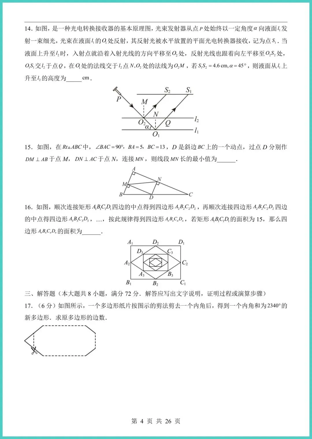 【免费下载】八年级(下)数学第1次月考(湘教版) | PDF完整高清电子版可打印