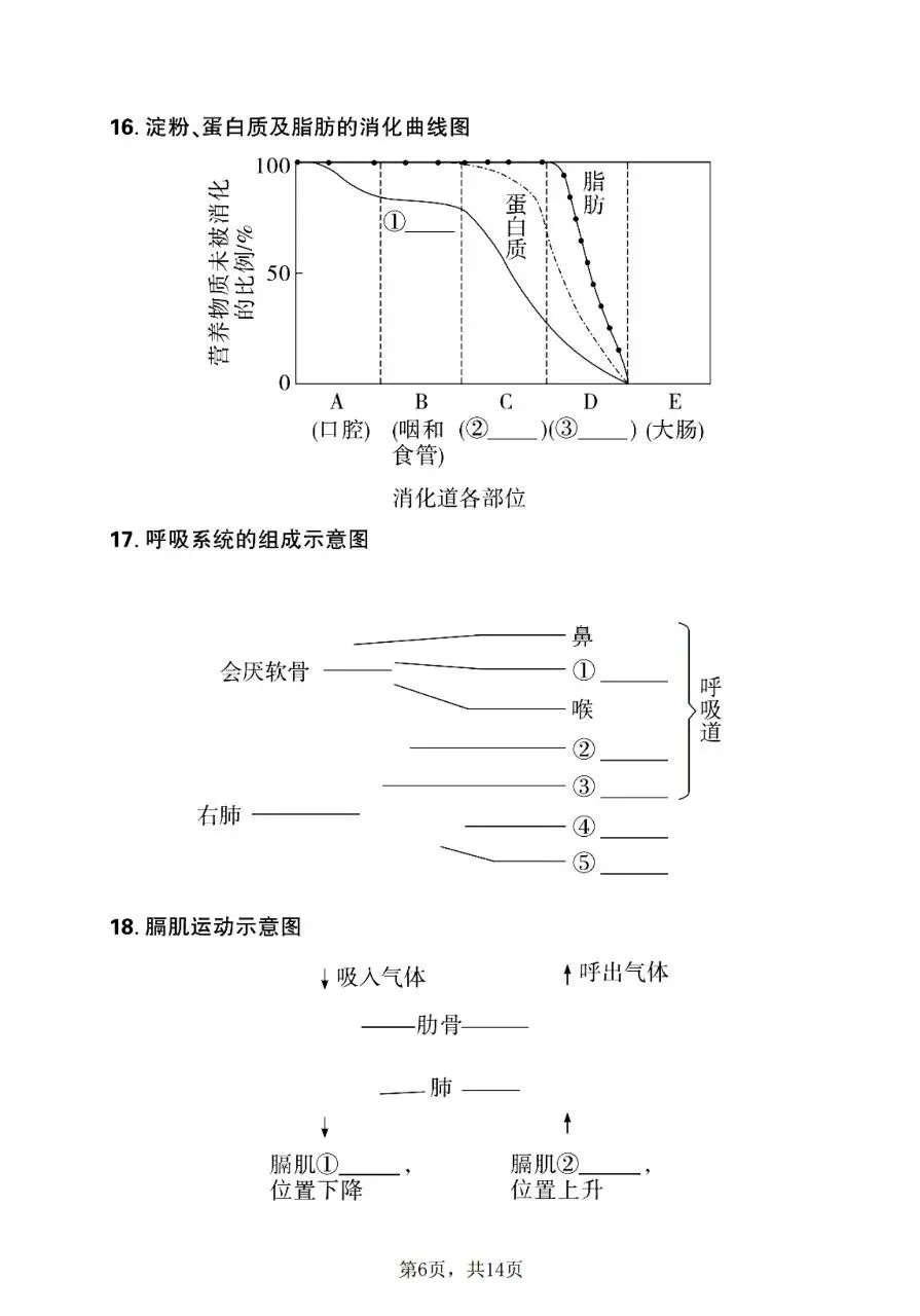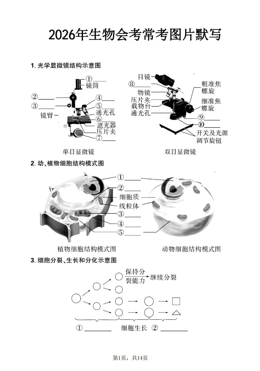 2026年最新版生物会考常考图片默写,有完整电子版可打印,学霸学习好帮手,建议家长打印,学霸人手一份!