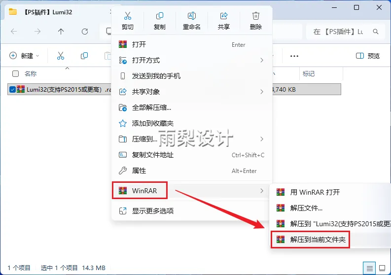 1.右键下载的压缩包,并【解压到当前文件夹】