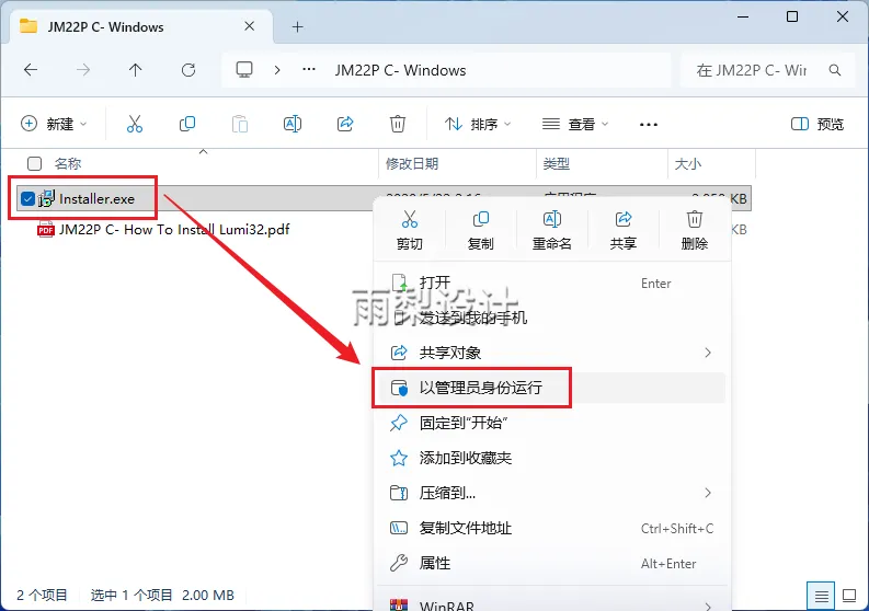 2.右键【Installer.exe】选择【以管理员身份运行】