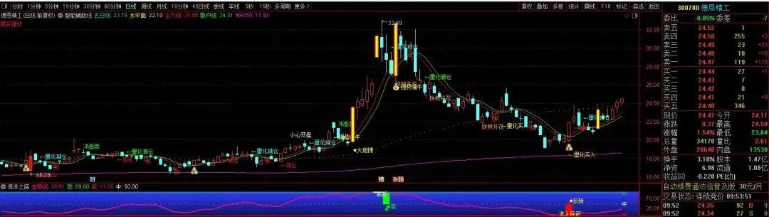 DRAWTEXT(GSDK0,40,’★卖’),COLORGREEN;