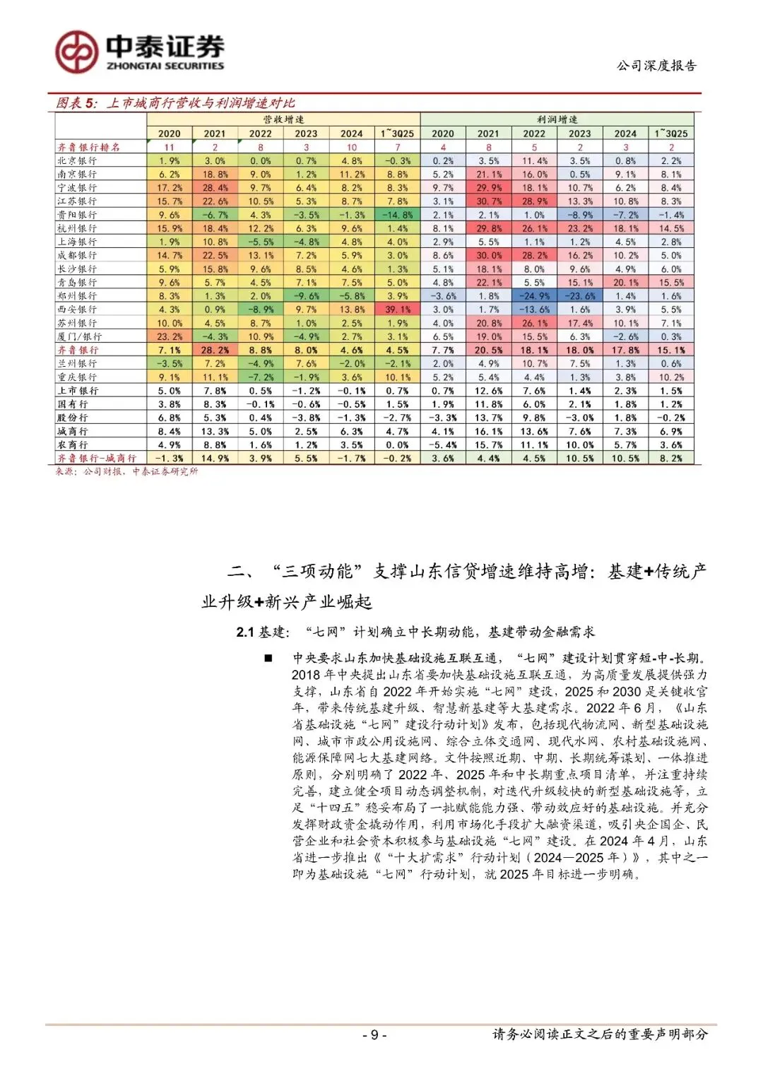 核心投资逻辑。1、扩表动能强;区位增长动能叠加齐喜鲁银行自身在山东省内机构业务、产业、科创、和县域领域的领先地位,以及网点建设、负债请和资本端的优势,预计齐鲁银行市占率能进一步提升,从而带来扩表能力保持在等发高水平。2、信用威本有下降空间:资产质量持续改善的同时信用成本保持在相对转交高水平,信用成本有进一步下降的空间,利好利润增长的持续性,3、扩表动能强+贵产质量优=高ROE可持续。
