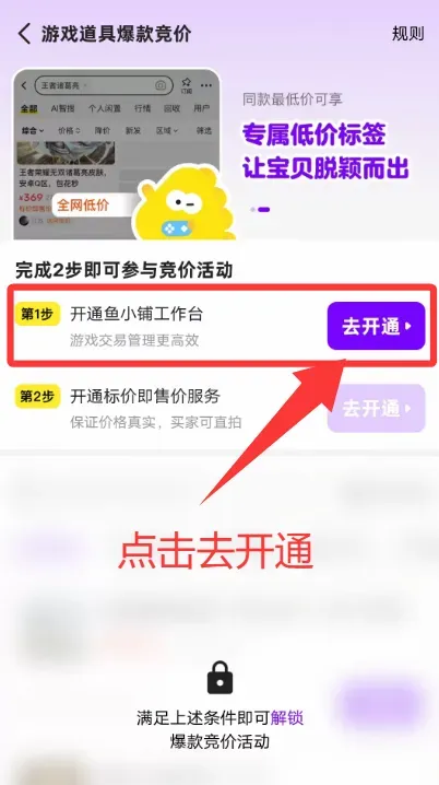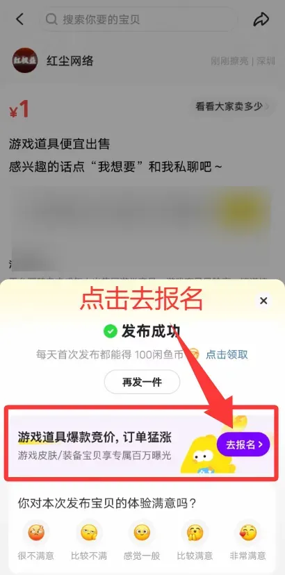 闲鱼APP鱼小铺功能开通详细教程,一分钟秒开! 前言 2BWL.CN 红尘网络数卡权益货源平台官网 教程开始 1 打开闲鱼APP发布一个商品 (商品内容看下方教程) 【商品图片】 【商品标题与商品介绍】 “游戏道具便宜出售” 2 发布商品后停留在下图页面并按图片指示操作 更多最新咨询 请扫码关注下单微信服务号 红尘云网络