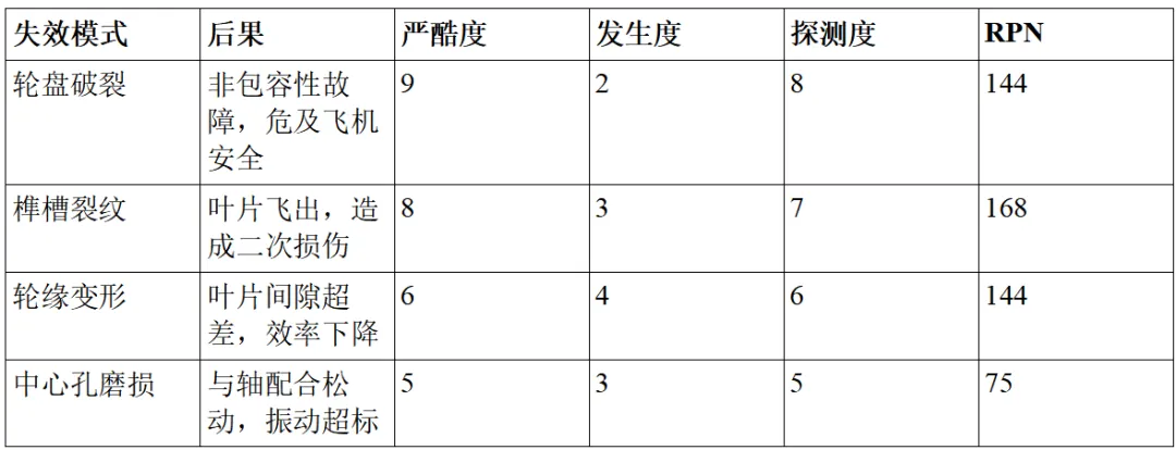 FMEA揭示:轮盘破裂和榫槽裂纹是最需要关注的失效模式,与之相关的特性应列为关键特性。