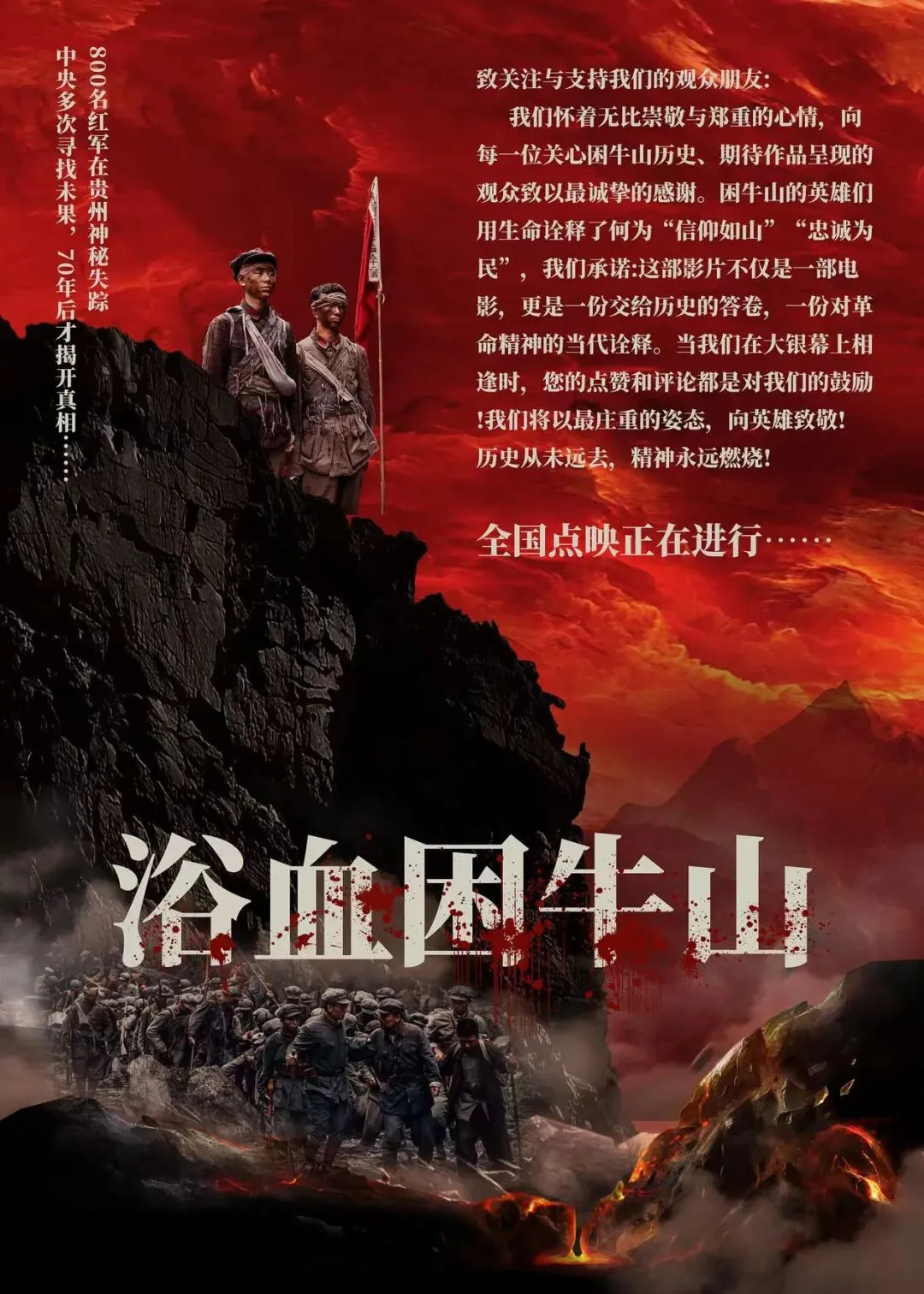 除此之外5月4日还有主旋律战争影片《浴血困牛山》取材真实历史事件,还原红军战士宁死不屈的跳崖事迹,原址取景,假期尾声传递家国情怀。