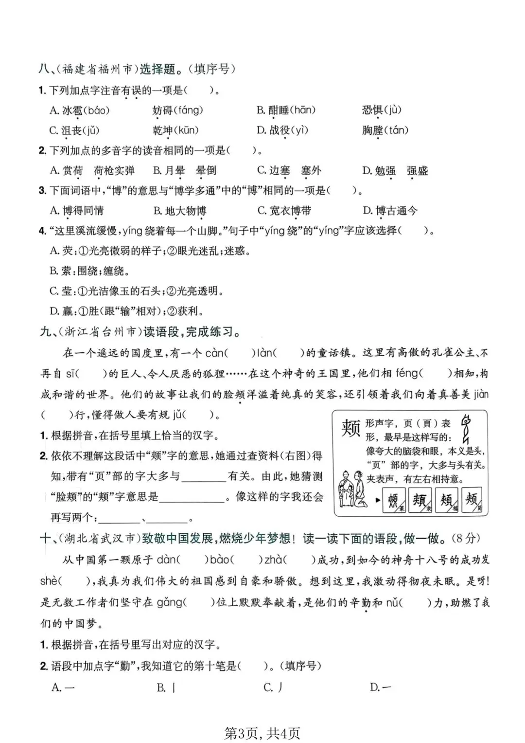 内容涵盖会认生字、会写生字、多音字、形近字、同音字、易错字、看拼音写词语等高频考查题型,按单元系统编排,突出易写错、易读错、易混淆字词,贴合四年级学习要求与考试命题方向。