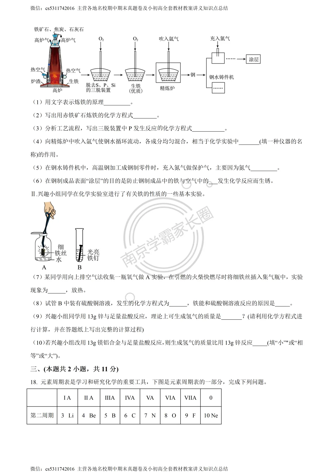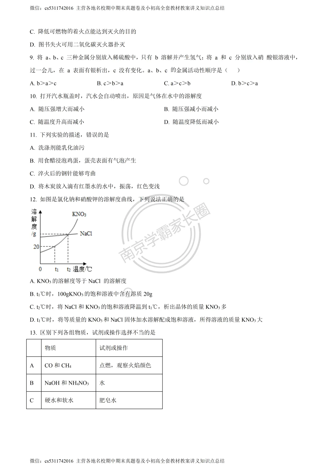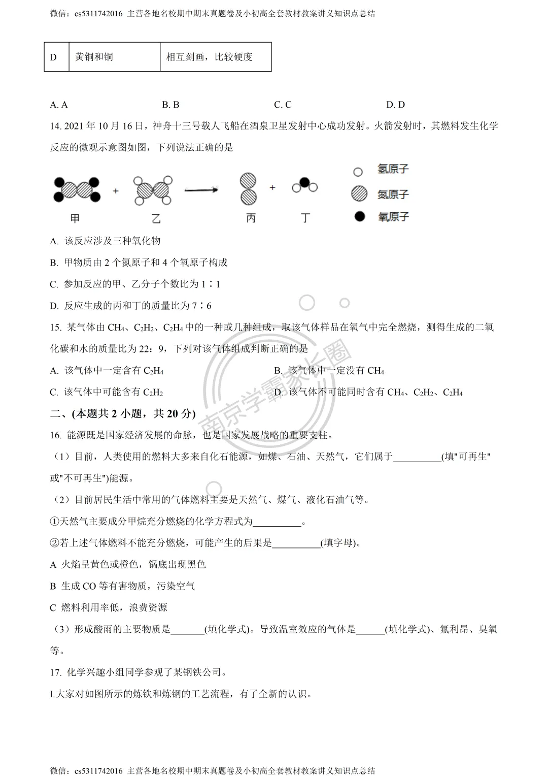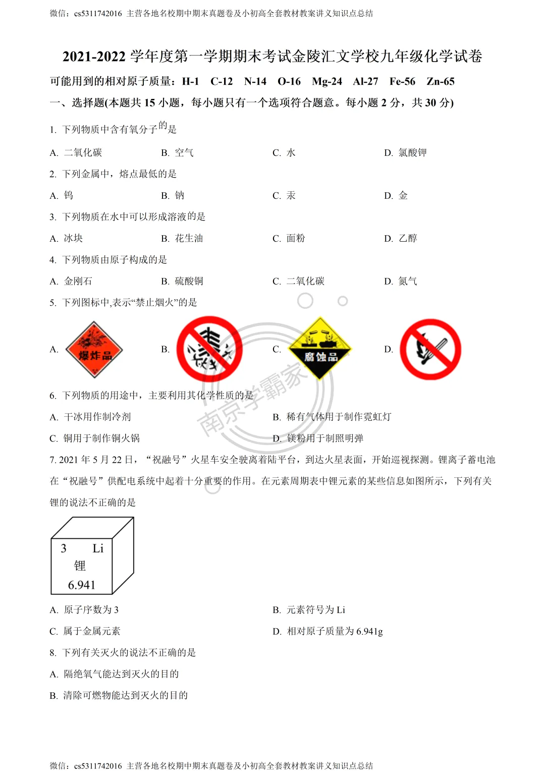 今日分享:金陵汇文学校九年级化学期末试卷,可打印完整版!