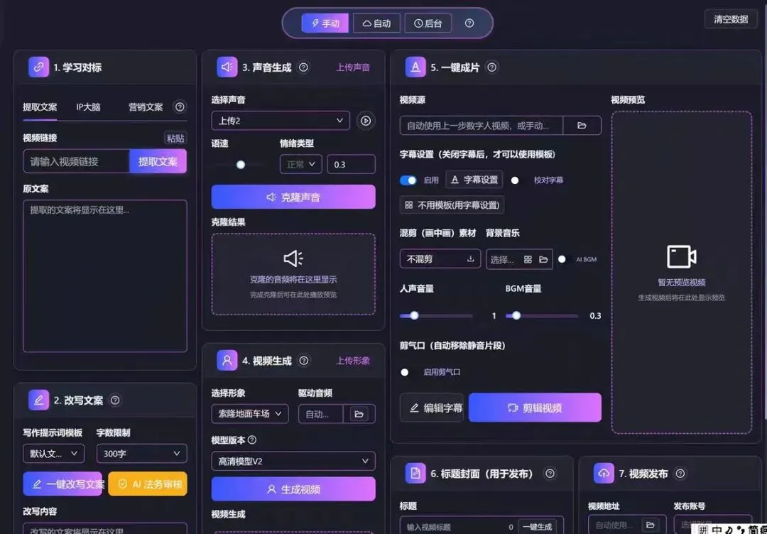🚀 核心功能:7 步自动化,从 0 到 1 打造优质口播视频