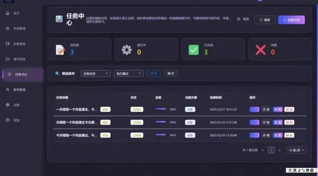 多平台一键分发:支持抖音、视频号、快手、小红书平台同步发布