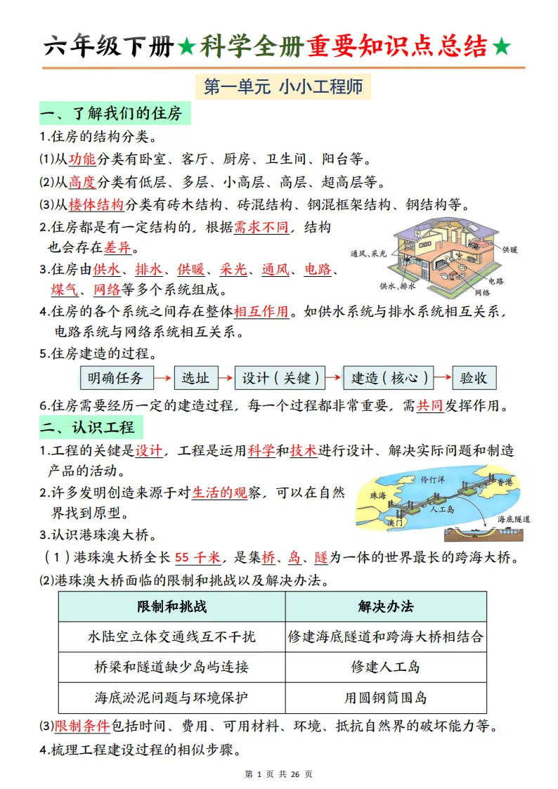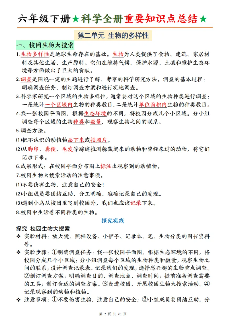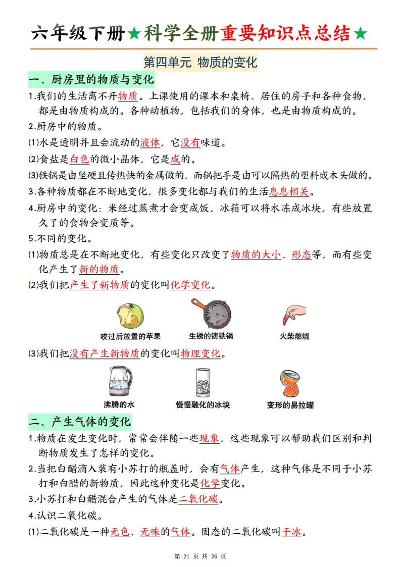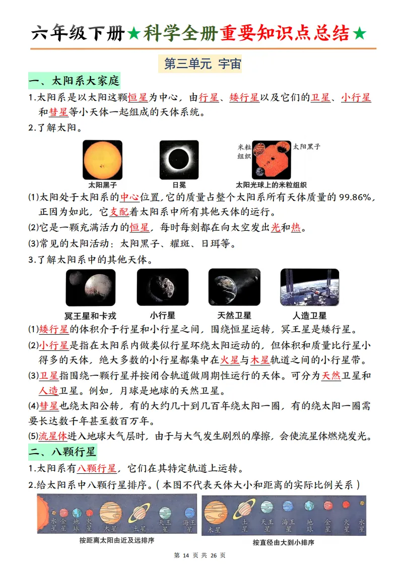 六年级下册科学全册重要知识点总结(电子版可打印)