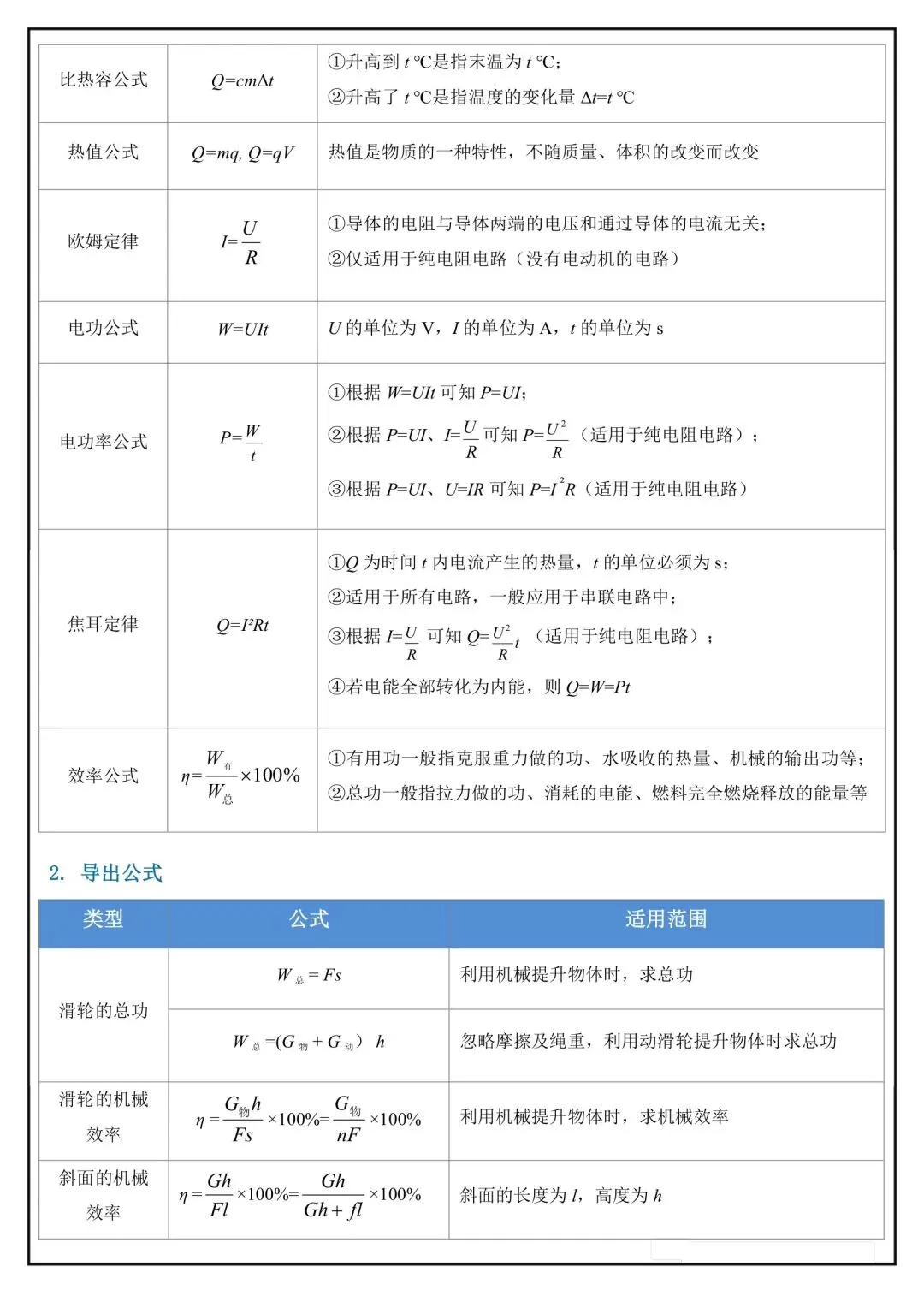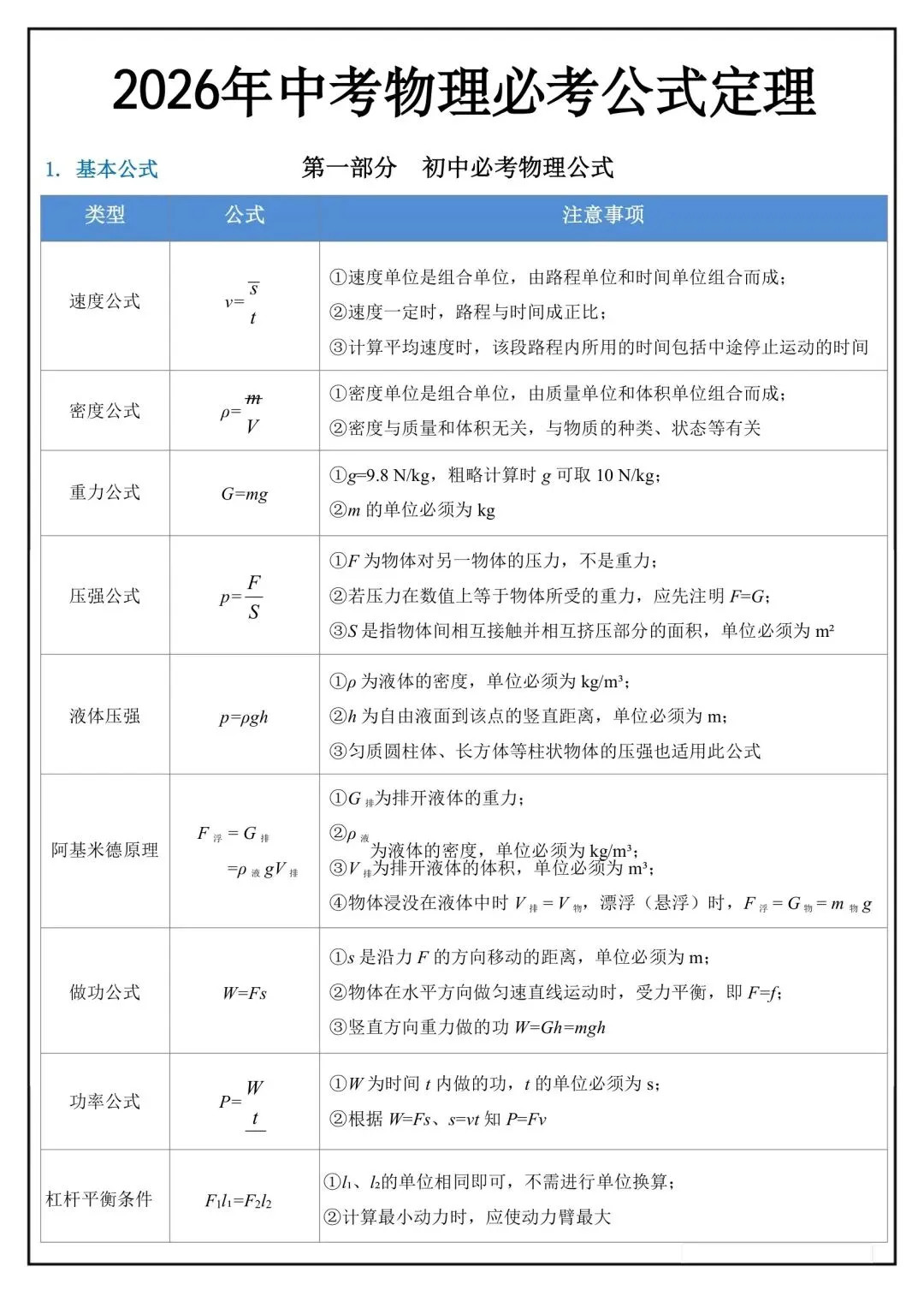 2026年中考物理必背公式定理,完整版可下载打印!