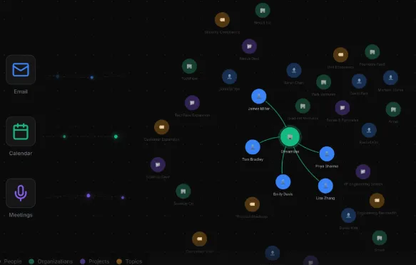它最牛的地方在于,不像以前的 AI 那样每次都是 “临时检索”,它是真的在帮你攒 “工作记忆”。它会把你连接的 Gmail、Google Calendar、Rowboat 会议笔记或 Fireflies 内容自动同步,连成一个长期知识图谱—— 本地文档需要手动放入 Rowboat 的 vault 目录才能被处理。比如它能自动关联 Alex 上周邮件里提的用户留存方案和上个月跟老板讨论的 Q3 预算限制,不用你自己去翻两份不同的文档,谁跟谁聊过什么、哪个项目关联哪些决策,一眼就能看懂。