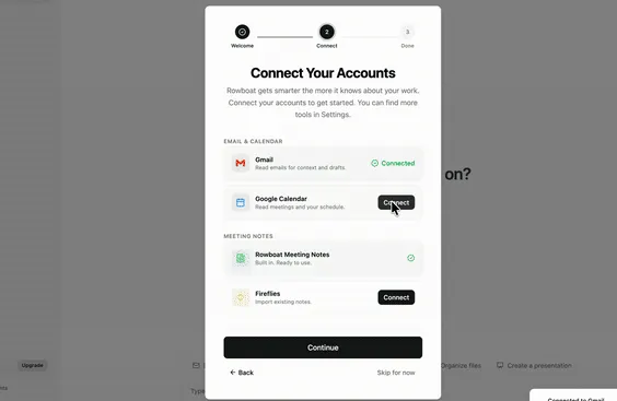 当时离会议开始还有 10 分钟,我打开 Rowboat,输入了一句:Prep me for my meeting with Alex。