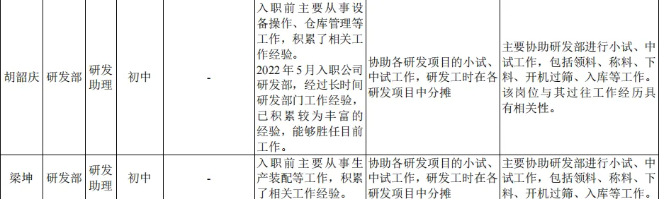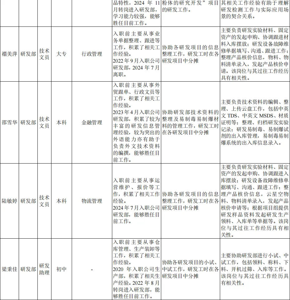 报告期各期末,公司研发人员中管理科学和其他类别专业人员占比分别为11.76%、13.70%、17.50%和16.67%,公司管理科学类、其他类别专业研发人员主要系研发技术文员、研发助理等,相关人员的教育背景、从业经验、从事的研发项目及具体研发工作如下: