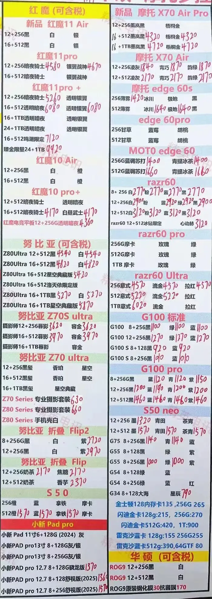 以下报价都是深圳华强北手机批发市场当天的最新批发价格(不含税),报价是我们的批发底价,零售拿货价格需加20~100元不等,京东包邮(量大价格可谈)