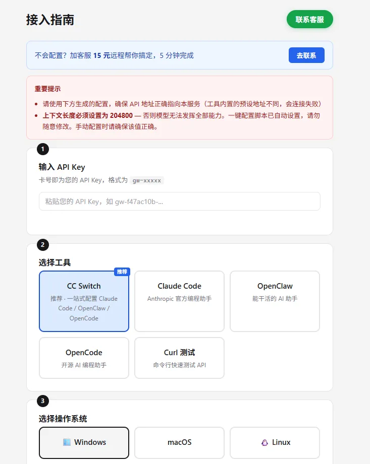 OpenClaw 和 Claude Code 也是一键就可以可以进行配置,现在中转站的这些使用文档都写的非常不错了。