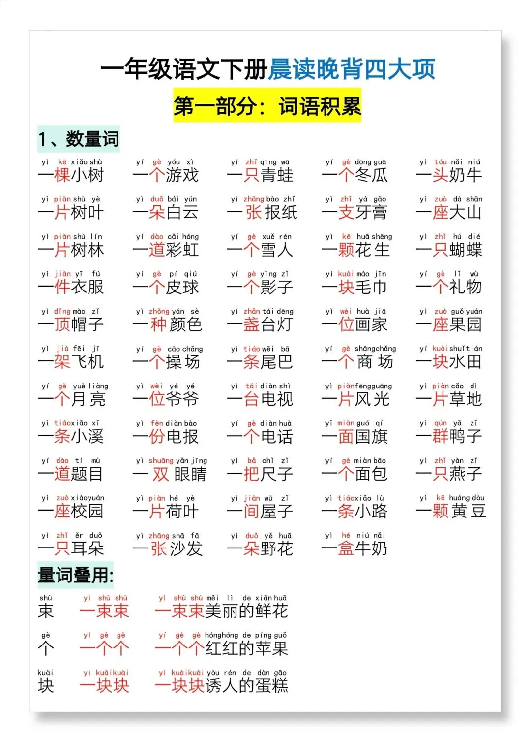 一年级下册语文,晨读晚诵,电子版可打印!