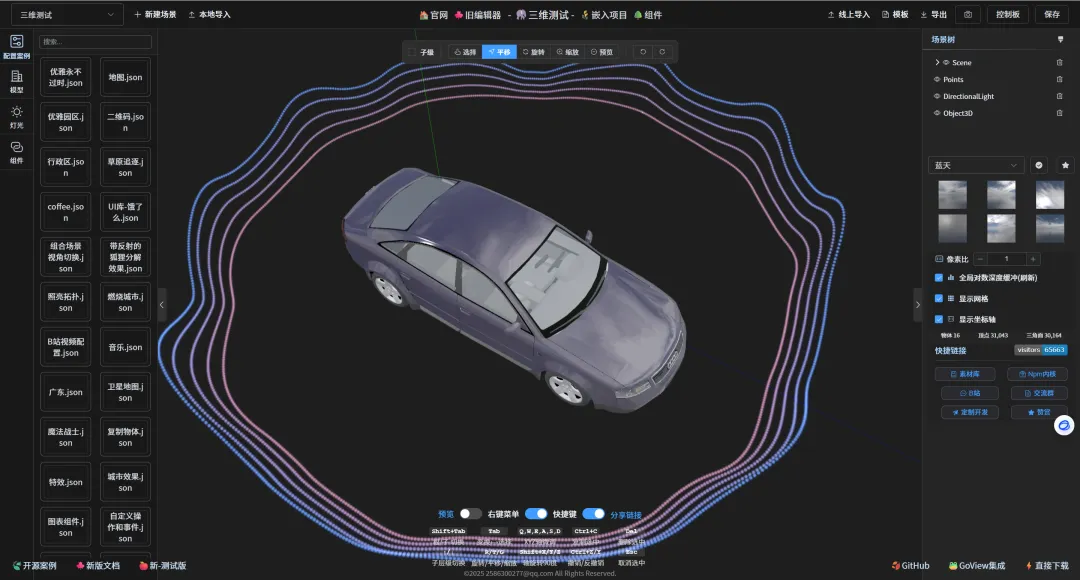 Three-Editor的思路很简单:把这些底层复杂性封装起来,给你一个可视化界面,像Photoshop一样,用鼠标拖拽、点击、滑动,就能完成3D场景的搭建。
