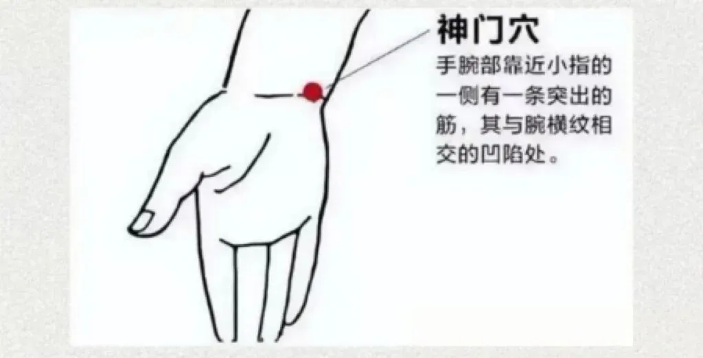 ➔ 宁心安神,缓解心烦、失眠。拇指按揉3分钟至酸胀感。