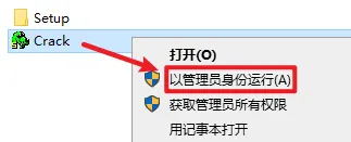 11.打开解压后的安装包,右键以管理员身份运行Crack程序。