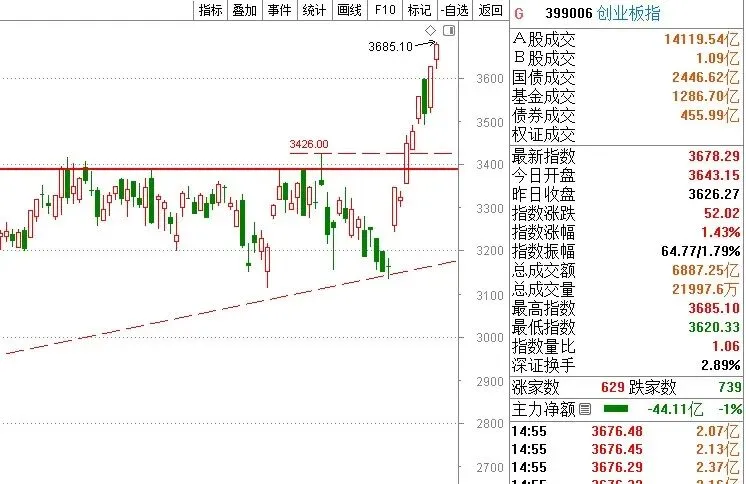 今天创业板以中阳收盘,涨幅1.43%,涨幅也不错,我却高兴不起来,涨了指数而期权虚值还跌!因为降波!