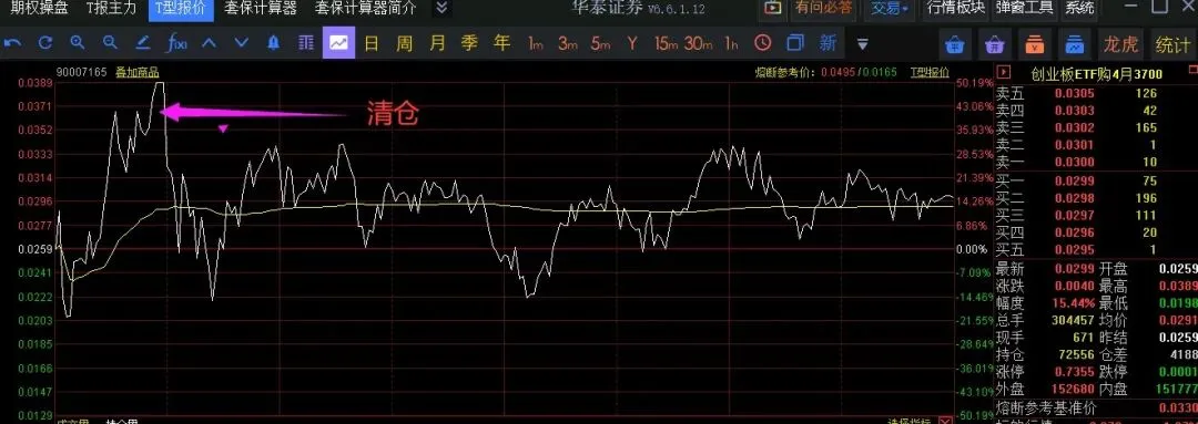 二:下午减仓50%虚值一档合约即当月3800合约。