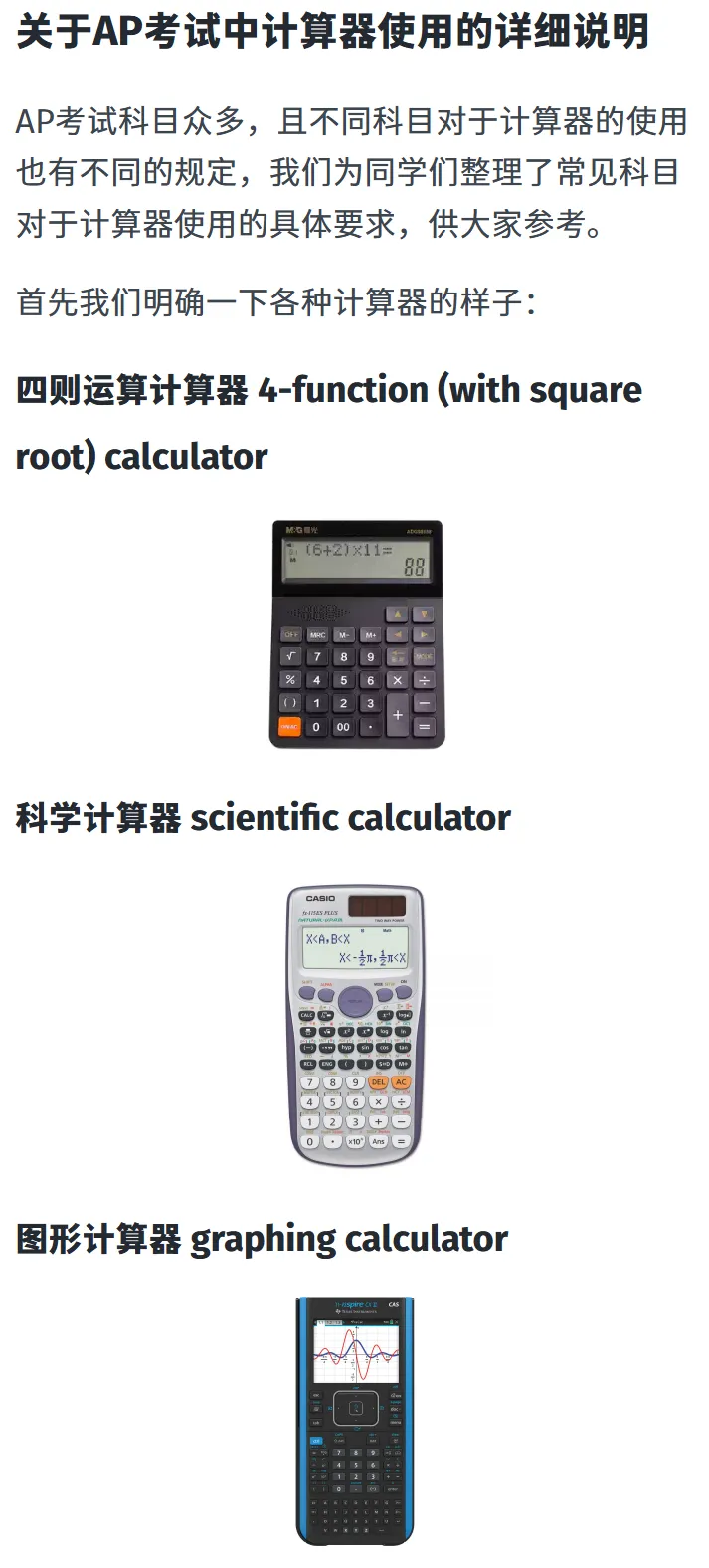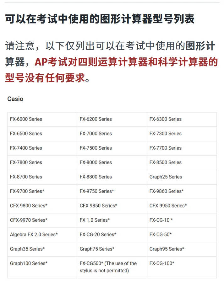 关于AP考试中计算器使用的详细说明