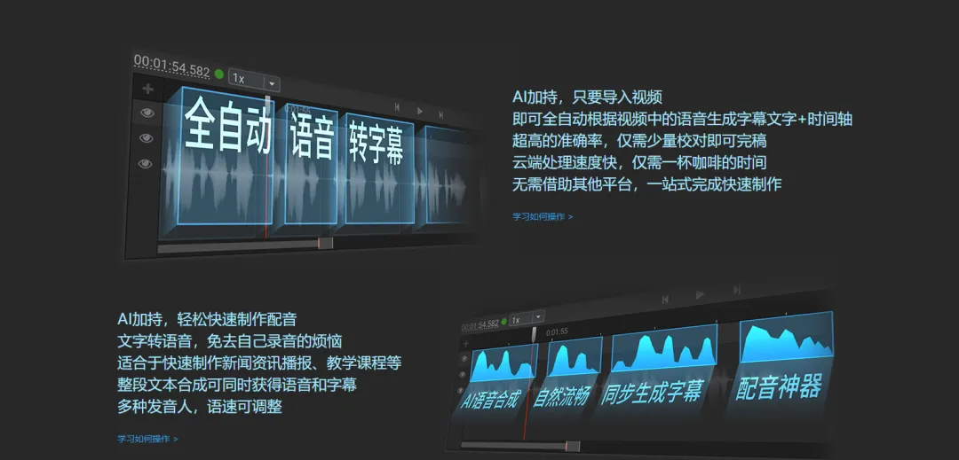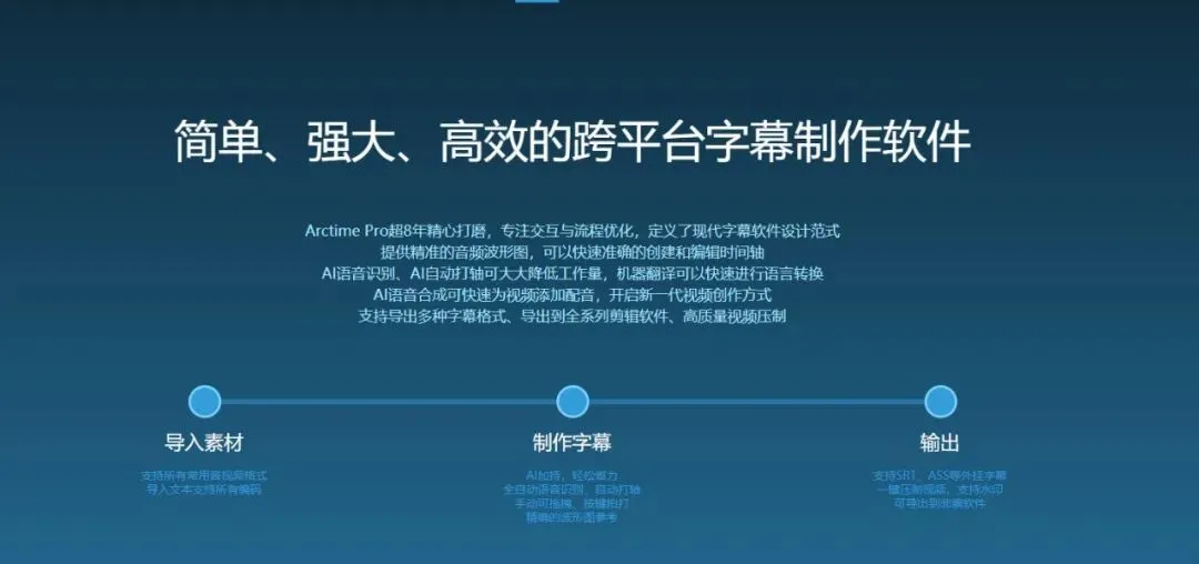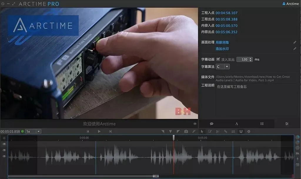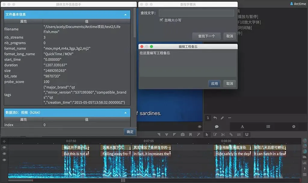 Arctime是一个全新理念的可视化字幕创作软件,可以大大提高字幕制作效率;借助精准的音频波形图,可以快速准确的创建和编辑时间轴;语音识别可大大降低打字工作量,机器翻译可以快速进行语言转换;