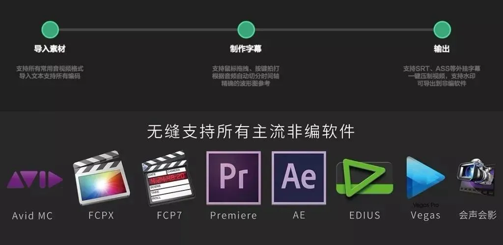 支持导出多种字幕格式,并可以将结果输出到各种剪辑软件;如需交付视频,通过压制功能即可轻松完成字幕压制工作。