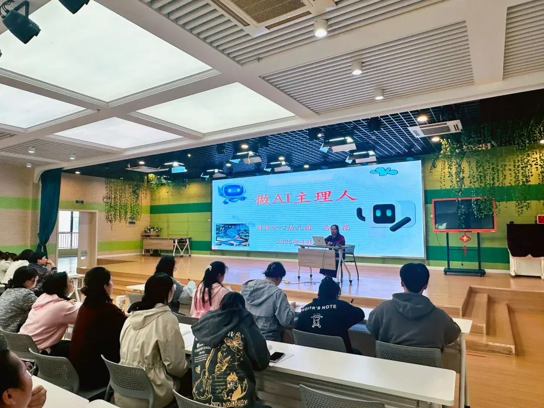为深化人工智能技术在幼儿教育领域的应用,持续提升幼儿园教师的数字素养及应用技能,推动信息技术与幼儿教学的深度融合,2026年4月15日新桥中心幼儿园开展了AI软件应用培训活动,全体教师积极参与、认真学习。