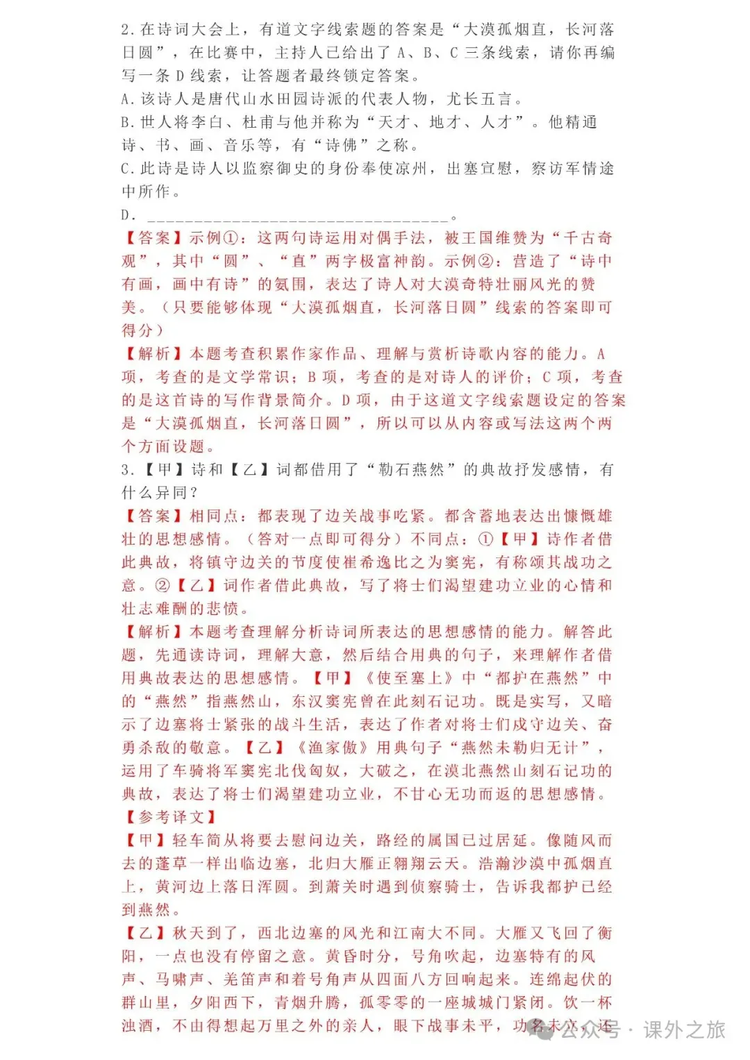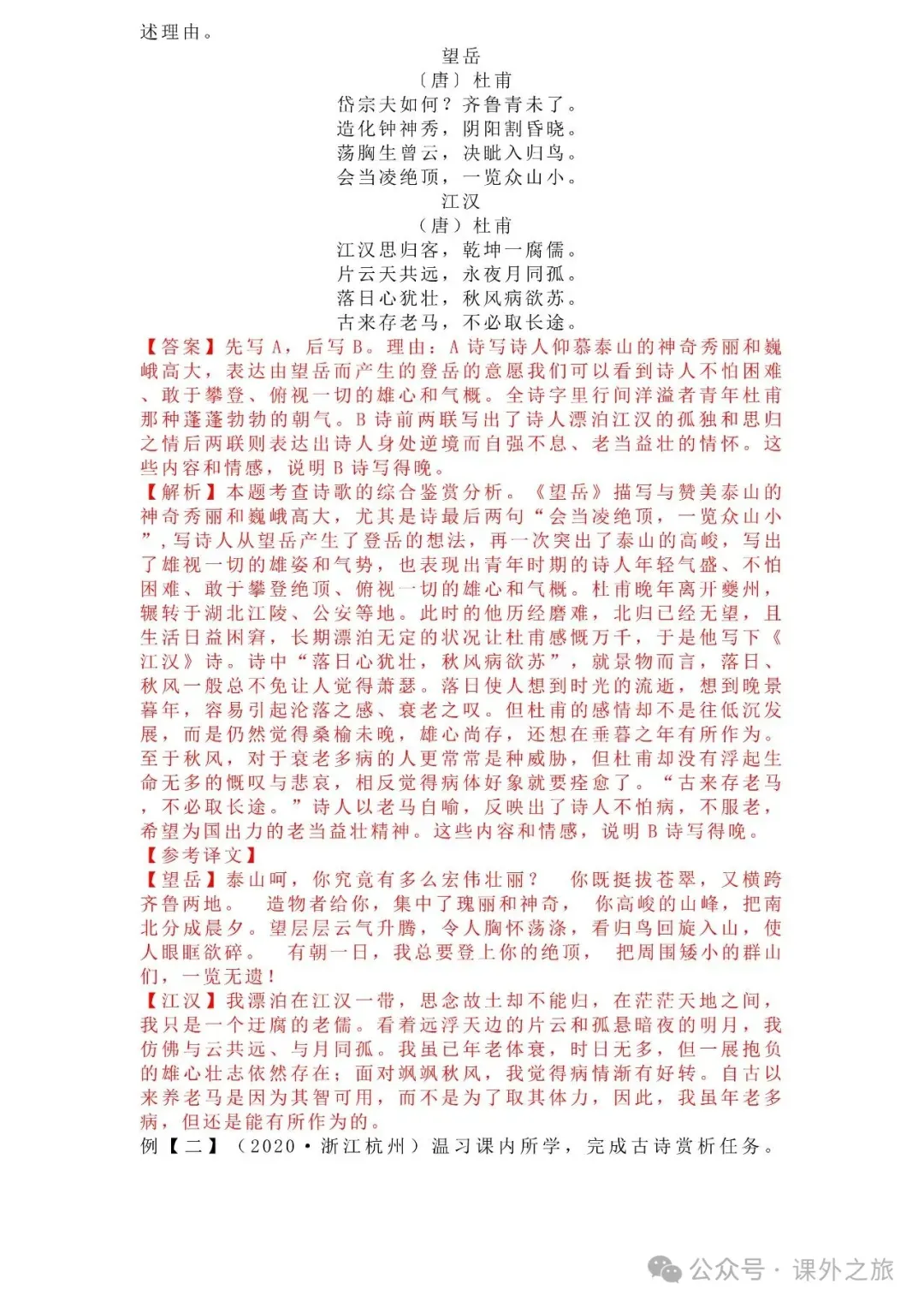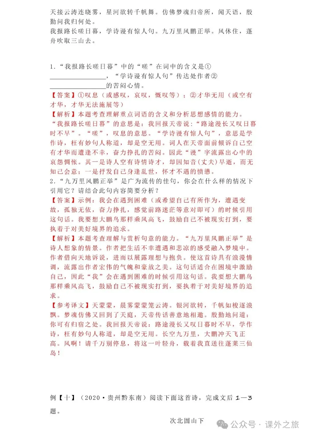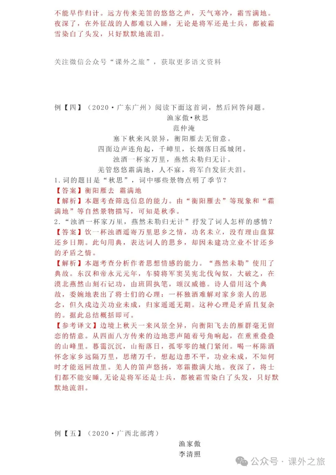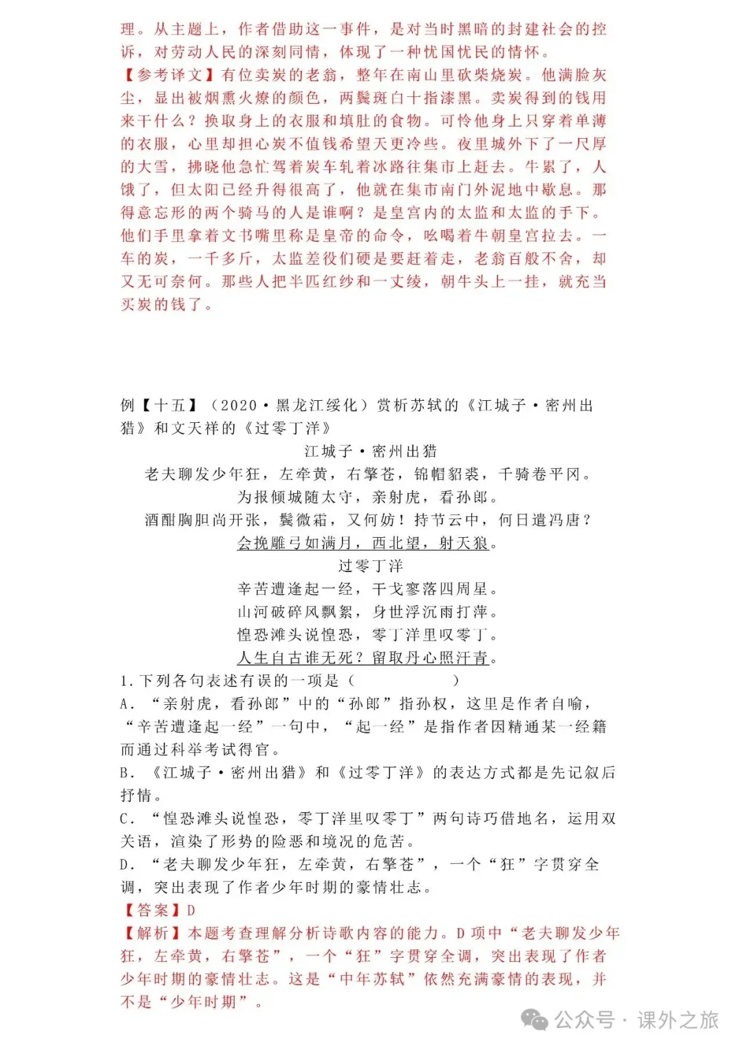 中考语文专项训练 专题16.诗歌鉴赏丨可下载 冬冬老师今天给大家整理了中考语文专项训练 专题16.诗歌鉴赏,请各位家长打印给孩子练练,更好的巩固所学的知识点!领取电子版和答案请拉到文末点我打印,5分一页,包邮到家!专题1.辨析和修改病句专题2.词语(成语)的理解与运用专题3.诗文名句背诵默写专题4.字音与字形写专题5.文学与文化常识专题6.修辞专题7.仿写专题8.标点符号专题9.汉字书写、汉字常识和书法鉴赏专题10.表达简明•连贯•得体专题11.仿积累与运用•语段阅读综合考查专题12.信息提取与概括专题13.对联专题14.文言文课内及课内对比阅读专题15.文言文课外及课内外对比阅读(因篇幅有限仅展示其中部分)(一)(篇幅有限,仅展示部分,下载含答案) (二)(篇幅有限,仅展示部分,下载含答案) -资源免费获取方式- 👇①扫码添加老师微信👇 进群可获取每日最新资源 👇②关注课外学苑公众号👇 回复关键词【中考复习】👇③分享文章到微信朋友圈👇扫下方二维码保存下载