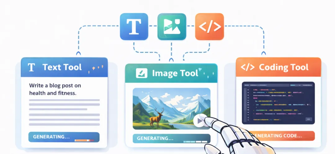 让他写文案、做图、剪视频、写代码、查资料、做分析、做客服。