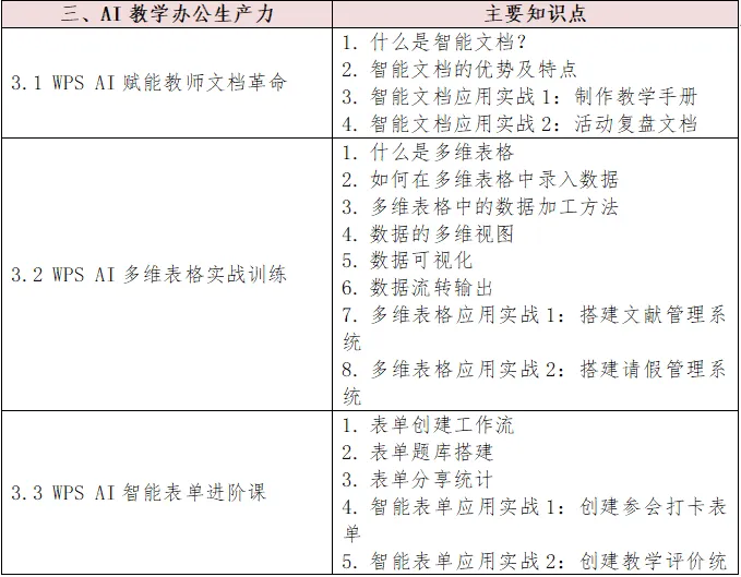 3. 掌握WPS新质生产力平台工具,能够灵活使用多种工具应对教学授课、日常办公、学生管理;