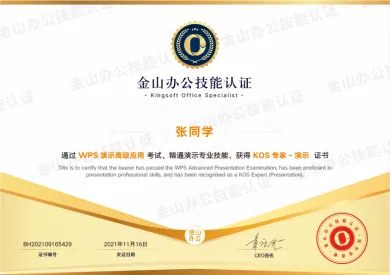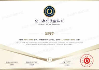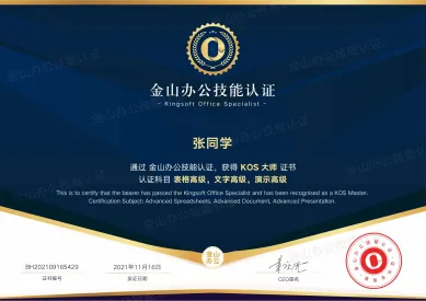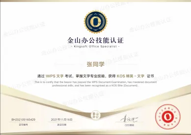 简介:金山办公技能认证(Kingsoft Office Specialist,简称:KOS),是由官方推出的“学、练、考、评”一体化办公技能认证平台,旨在为职场、学校等所有使用Office软件的用户,对其掌握WPS Office软件应用技能的熟练程度和专业程度的权威测评,是金山办公认可的Office办公软件应用技能认证。