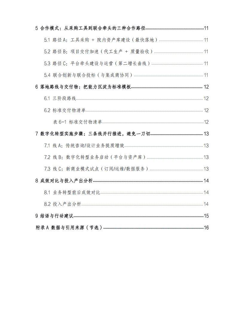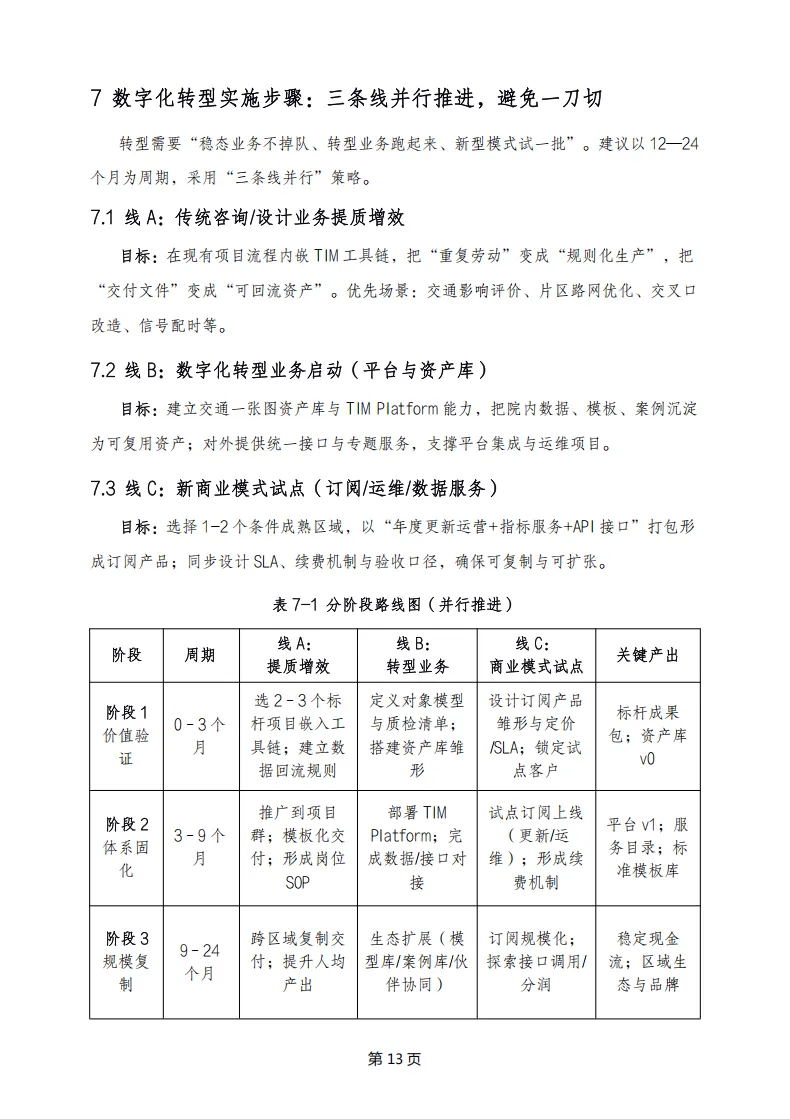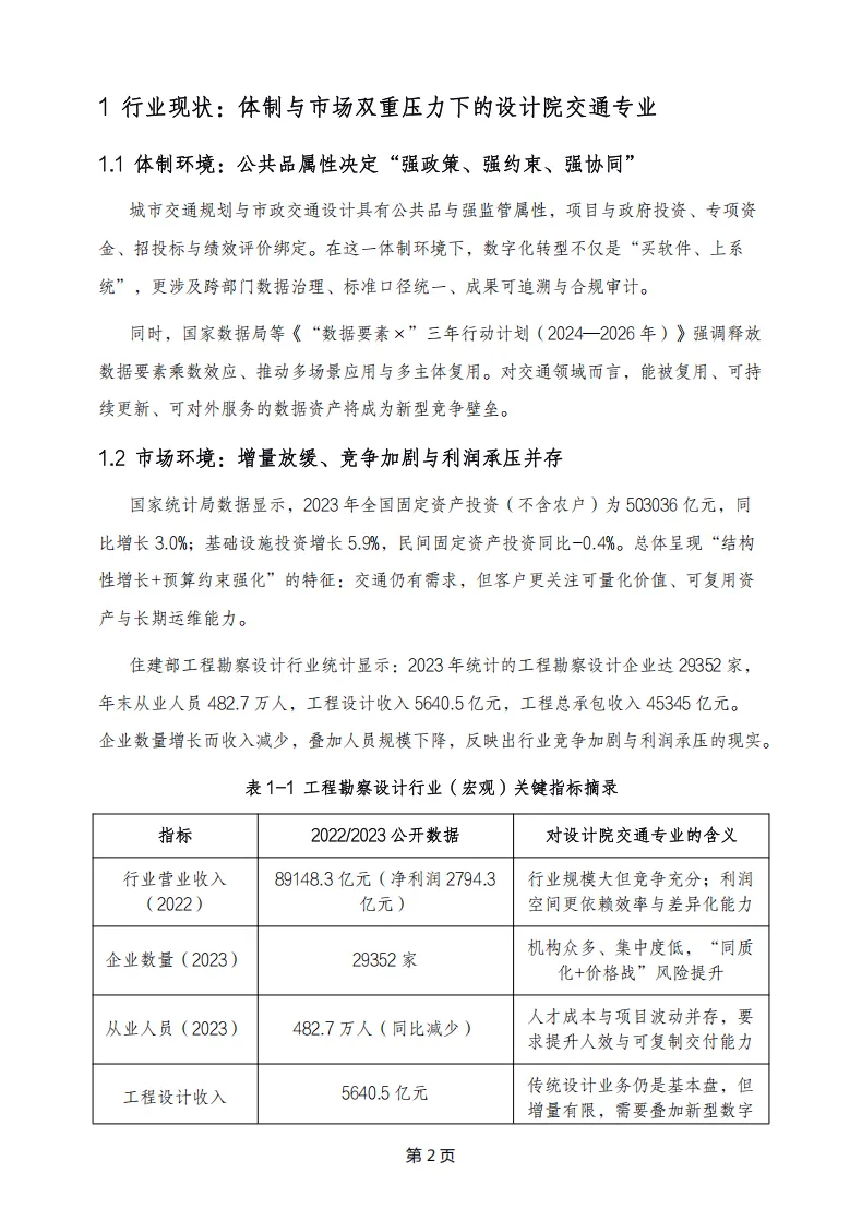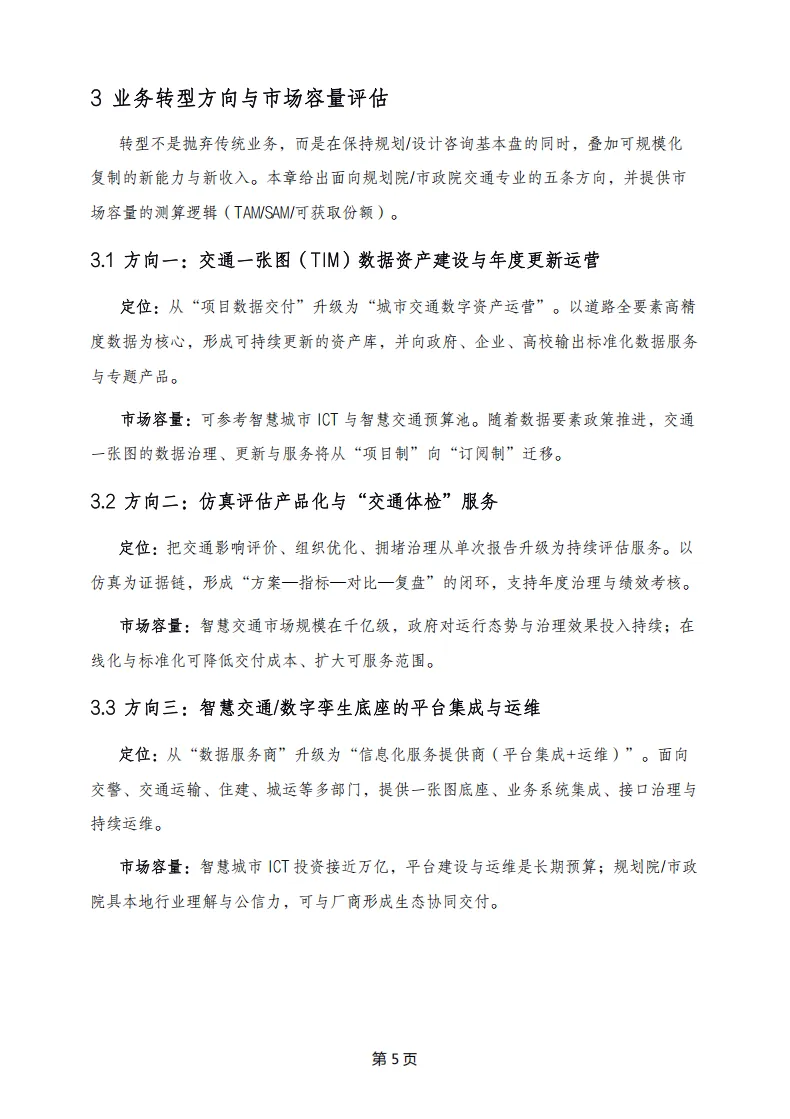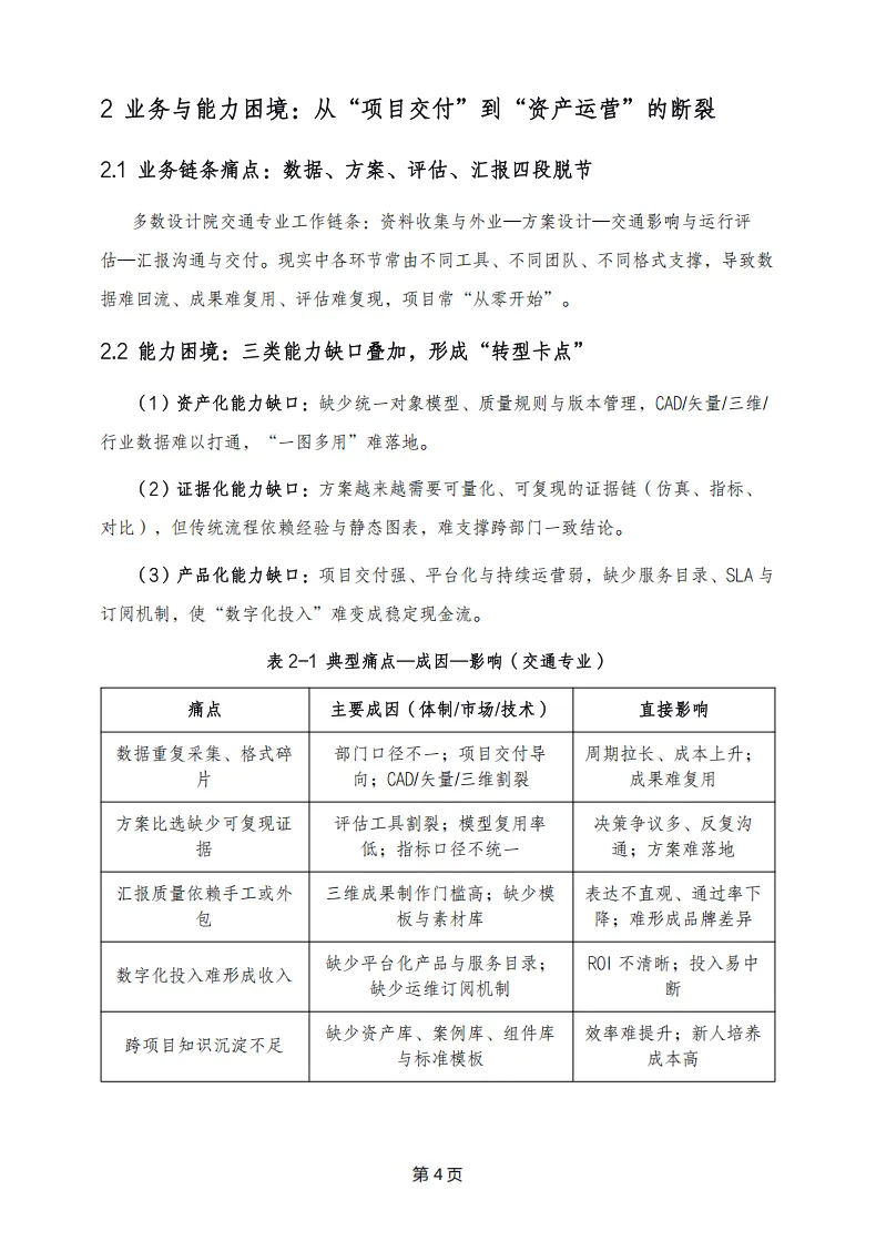 方案可显著缩短交付周期、提升成果复用率、降低沟通成本,实现从一次性项目收入向可持续运营收入转变,为设计院打造第二增长曲线,是交通规划设计领域数字化转型的实操指南与行动手册。