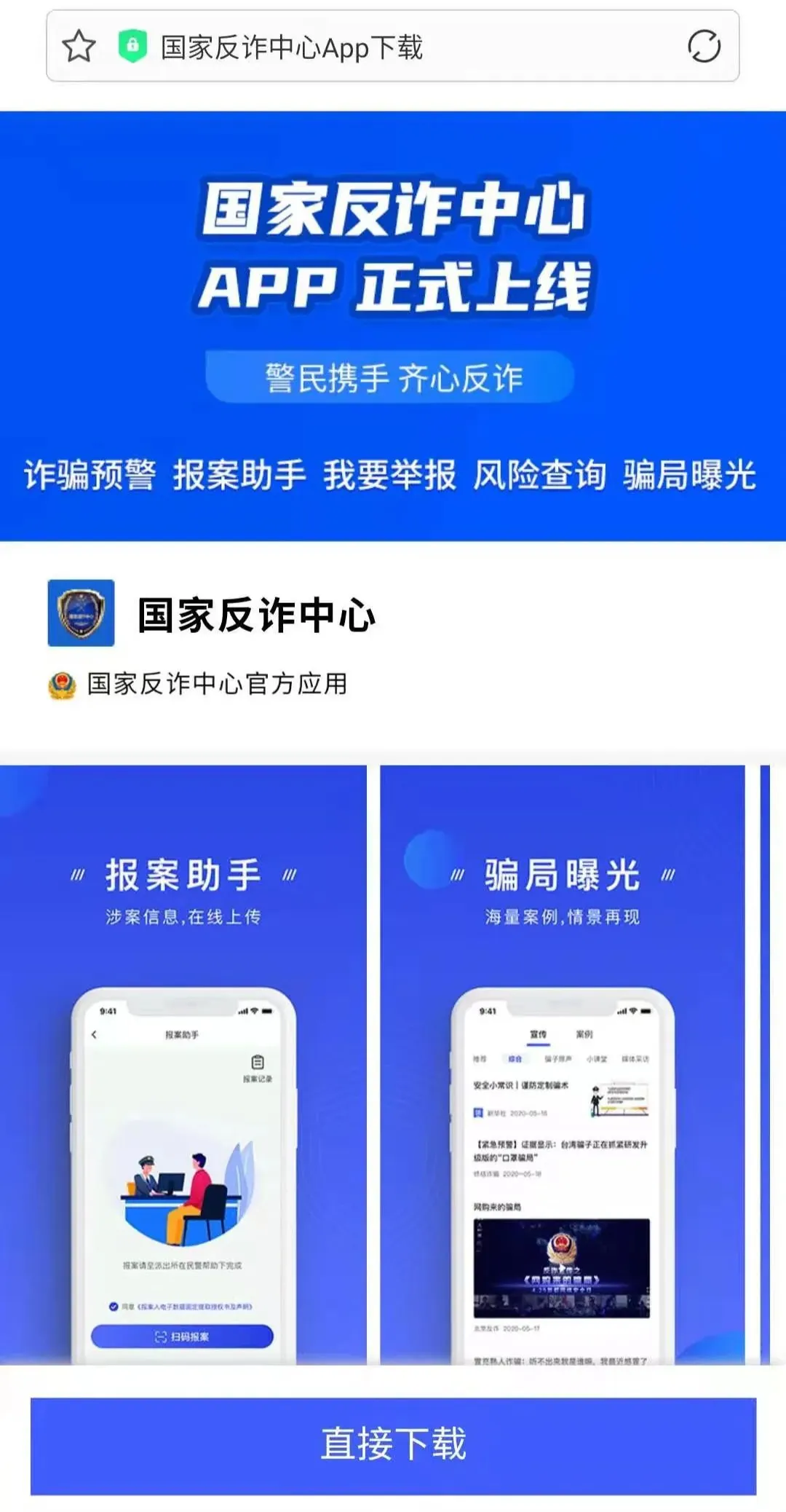 国家反诈中心app是一款能有效预防诈骗、快速举报诈骗内容的软件,软件里面有丰富的防诈骗知识,通过学习里面的知识可以有效避免各种网络诈骗的发生,提高每个用户的防骗能力,还可以随时向平台举报各种诈骗信息,减少不必要的财产损失。