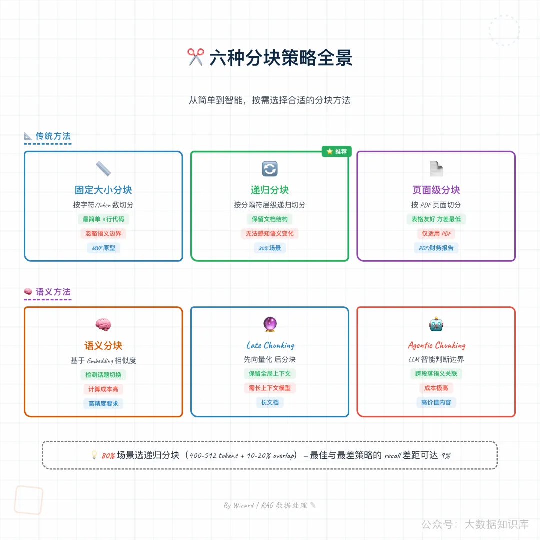 | Agentic Chunking | 用 LLM 智能判断分块边界 | 精度最高,成本也最高 |