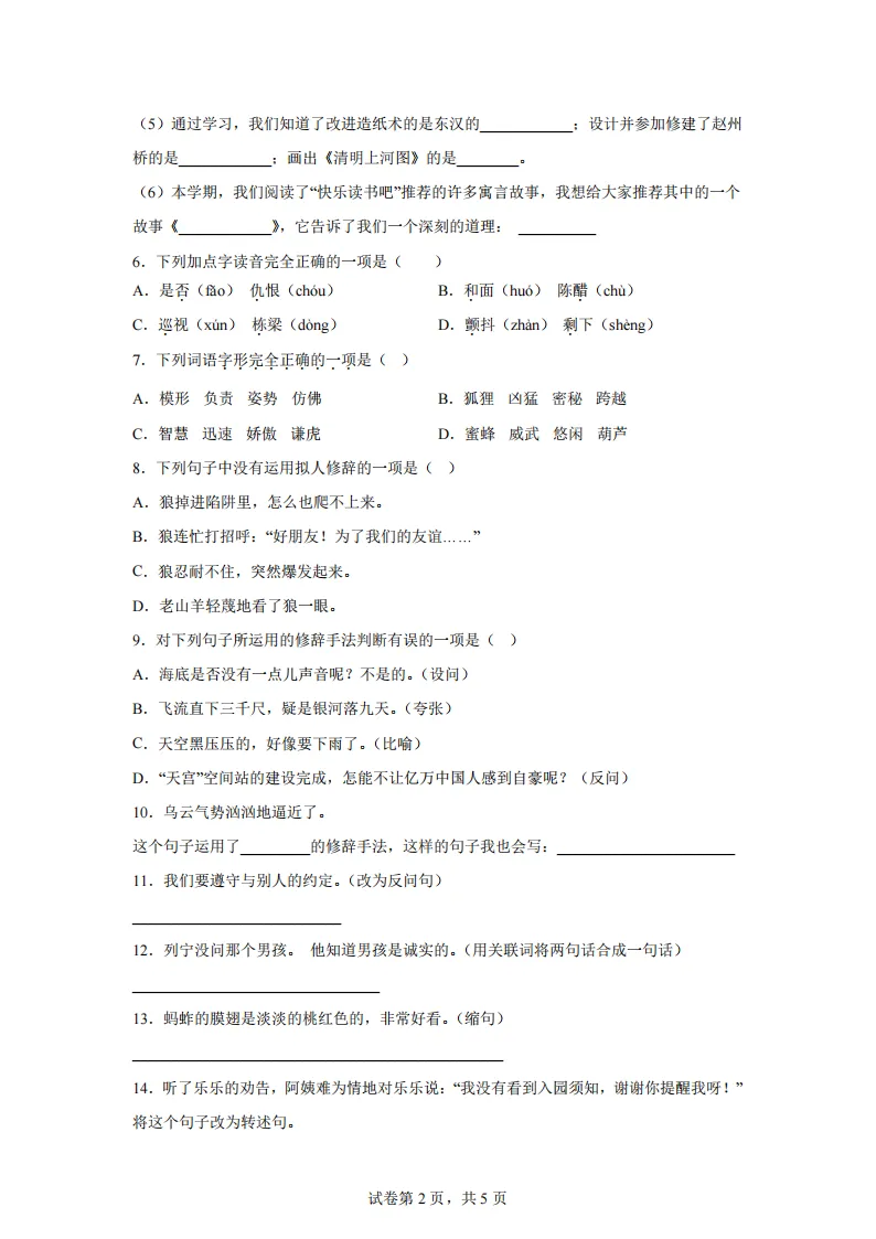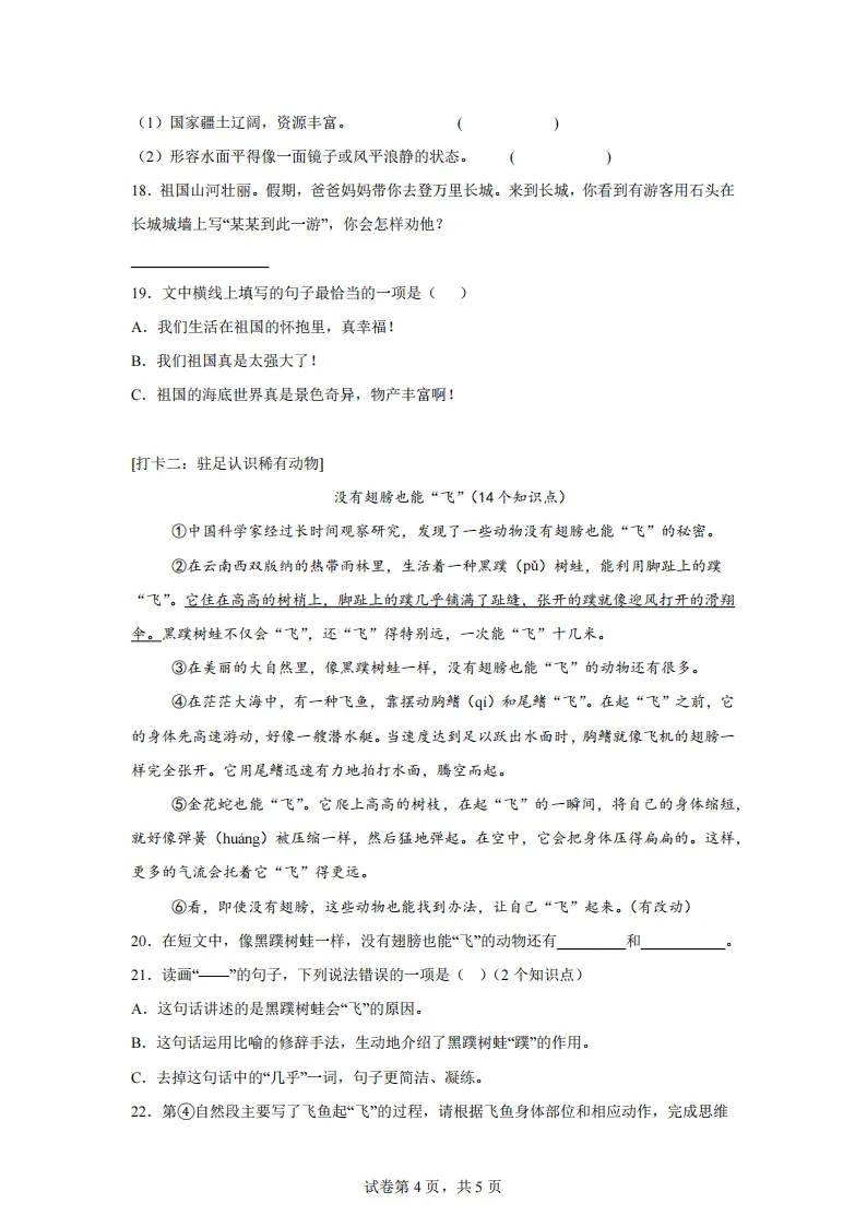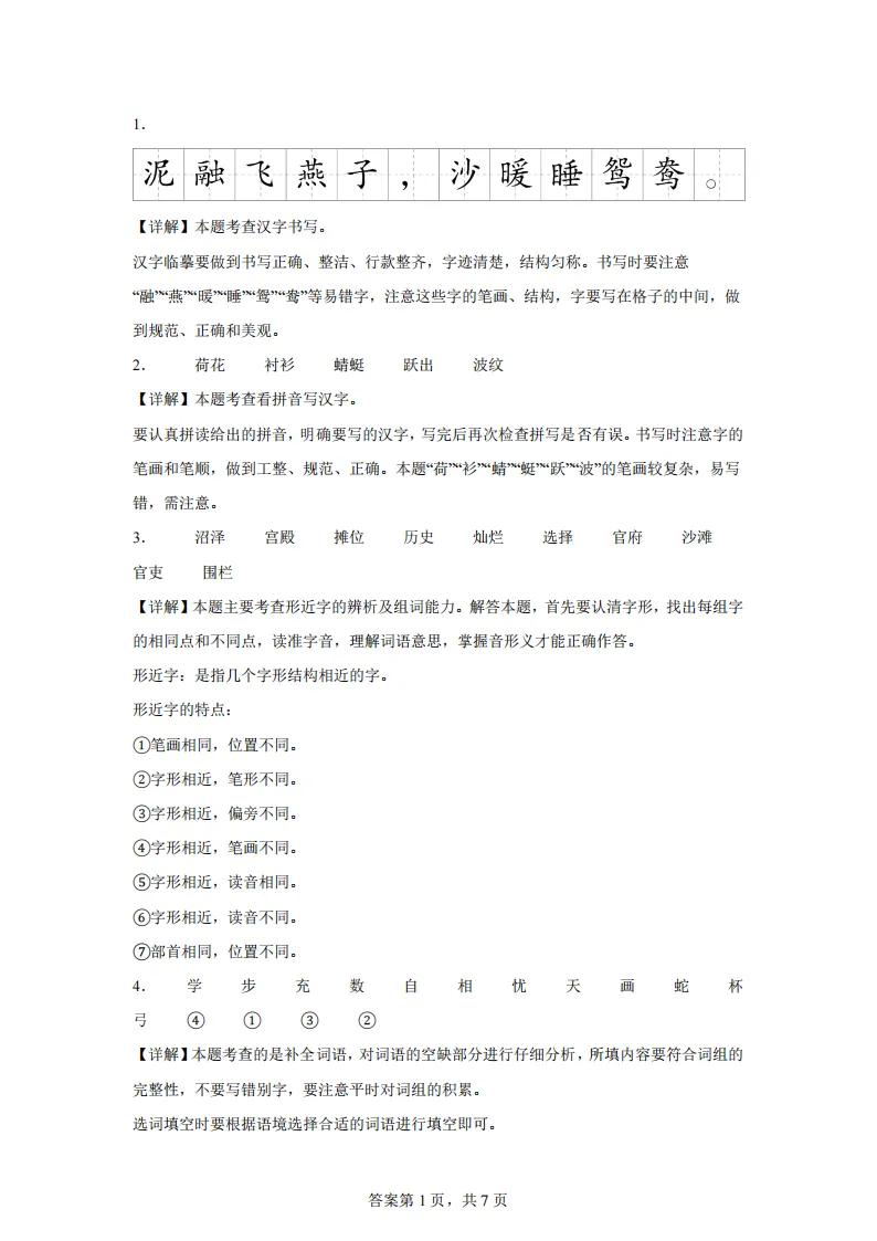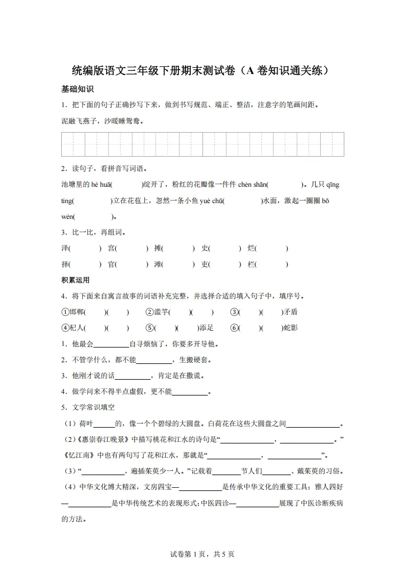 专项练习 I 统编版语文三年级下册期末测试卷(A卷知识通关练) 可下载打印