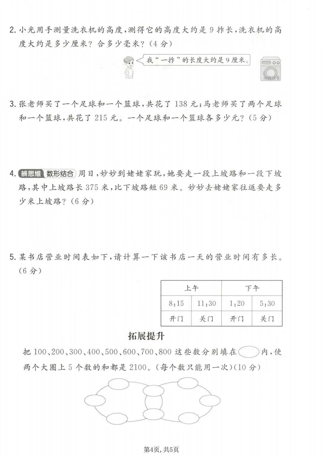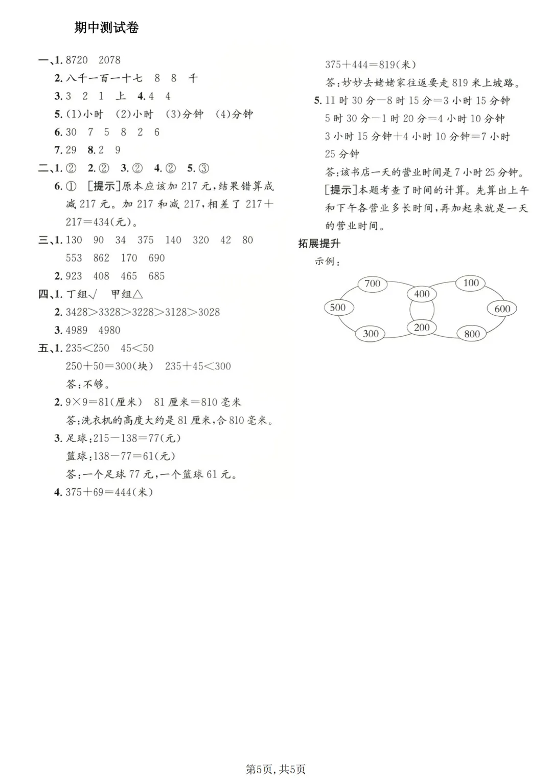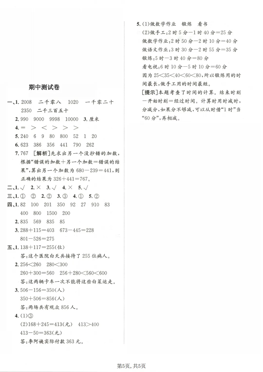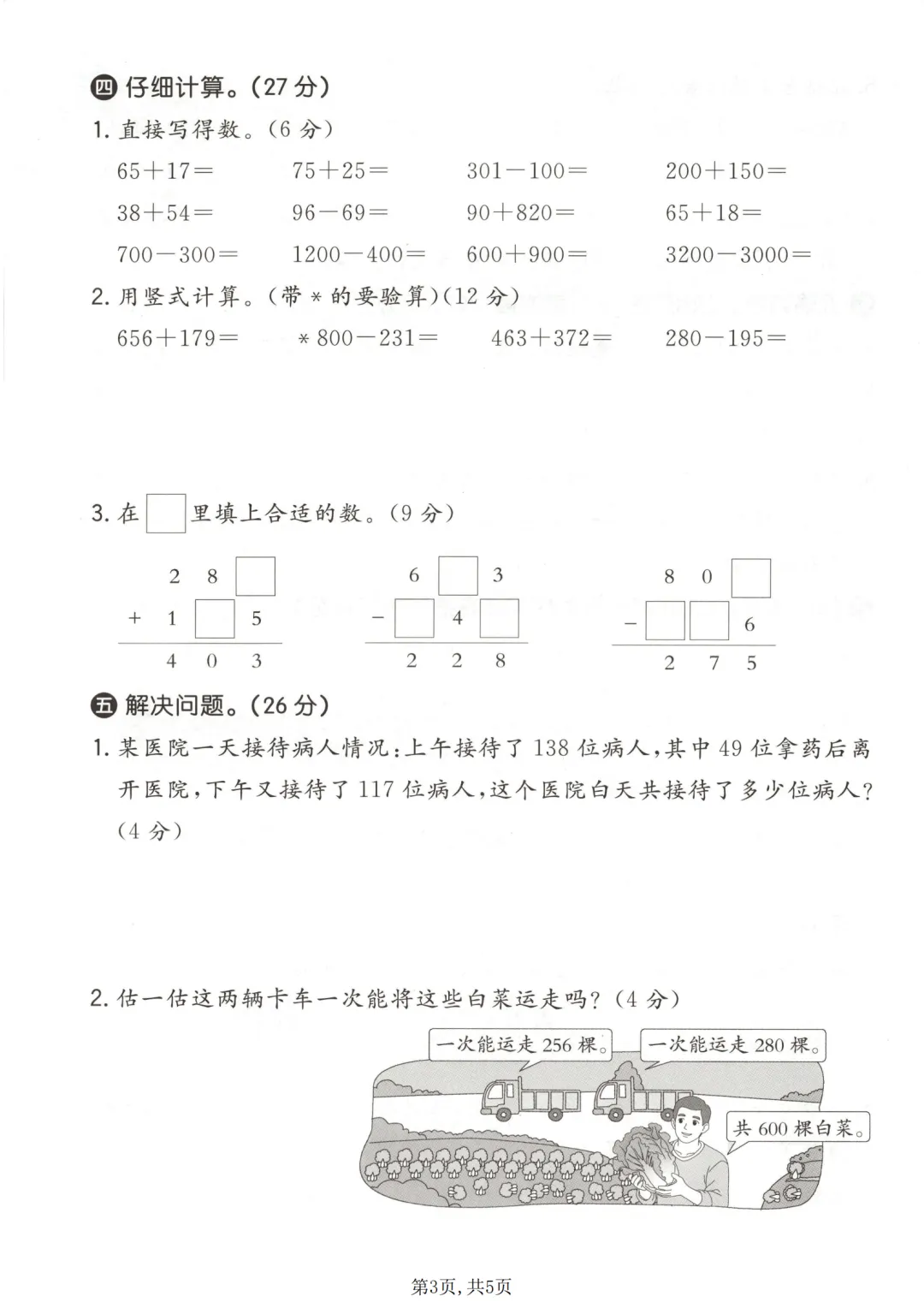 26年春新版二年级(下)数学青岛54版期中拔尖测试卷。精准适配教材与考情:试卷严格依据青岛 54 制数学教材大纲编写,深度贴合青岛本地校内小测与统考命题趋势,覆盖万以内数的认识、万以内加减法、时分秒的认识、图形与拼组、混合运算等核心知识点,题型和难度梯度与二年级学生的认知规律和学习特点相匹配。分层设计兼顾不同需求:采用基础过关卷 + 拔尖提升卷的科学分层设计。基础过关卷聚焦口算、竖式计算、基础填空等常规题型,帮助孩子夯实计算、概念、单位换算等核心根基,杜绝基础题型粗心失分;拔尖提升卷在基础之上适度拓展延伸,侧重知识灵活运用、易错点强化和解题技巧训练,循序渐进锻炼孩子的数学思维和知识迁移能力,适合想要巩固拔高、冲刺高分的孩子。全面覆盖学习场景:试卷结构科学完整,分为单元分层卷、专项突破卷、期中全真模拟卷等板块,一站式覆盖全学期测、练、评、考所有需求。期中全真模拟卷仿照青岛本地校内统考题型、题量、时长和分值设置,搭配直观图示辅助理解题意,帮助孩子提前适应考试节奏,养成认真审题、工整书写、做完检查的良好应试习惯。需要的家长抓紧打印出来,让孩子写一写,练一练吧。