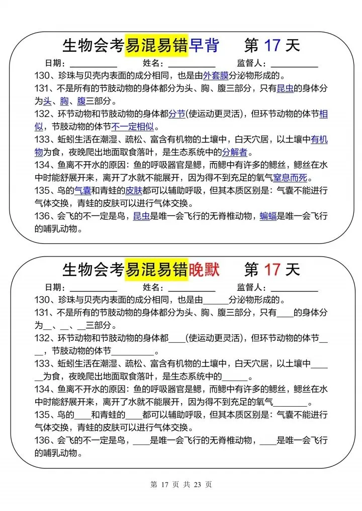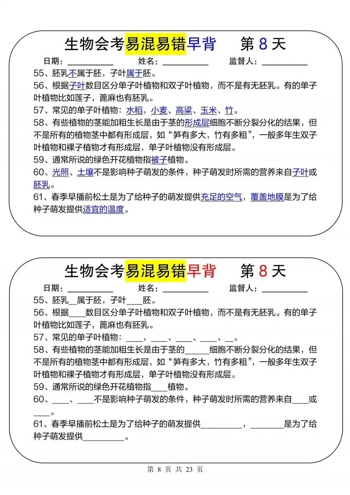今日分享26春八下生物会考易混易错早背晚默(完整电子版可打印)!高清可打印,每日轻量练习,拒绝无效刷题,用系统化资料筑牢学科基础,让假期成为提升的黄金期,开学轻松领跑。