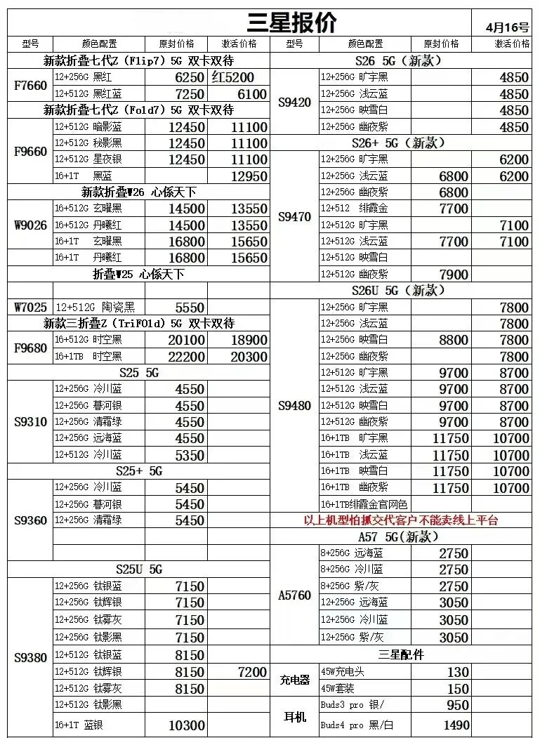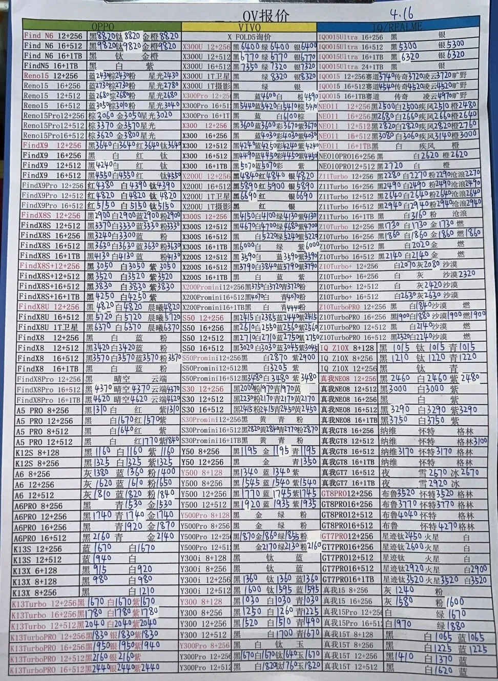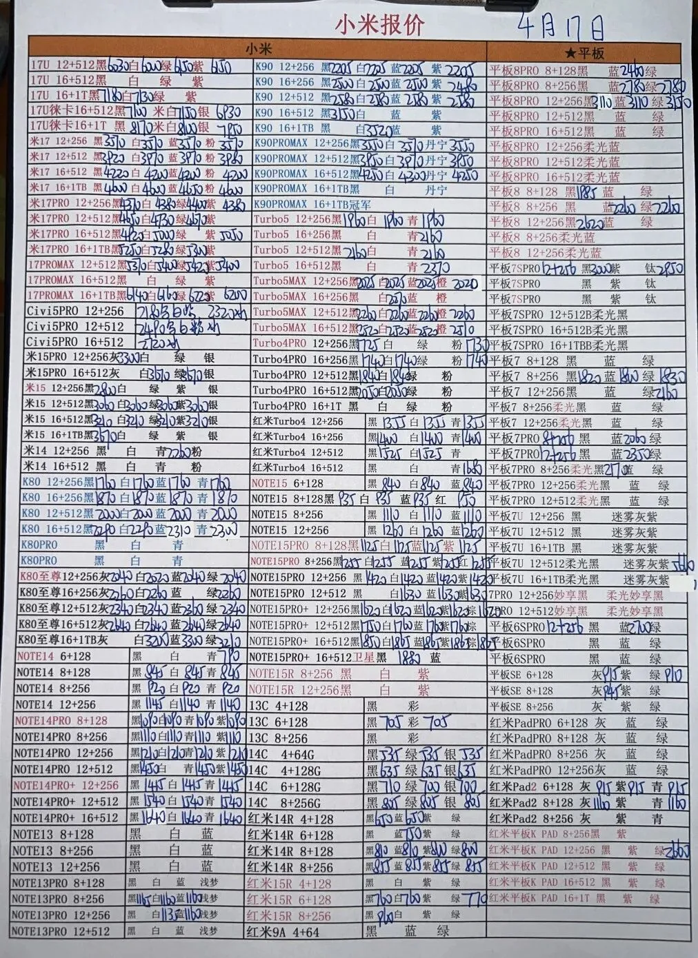 260417安卓手机报价 实体店:(来实体店之前,请务必先和我们的工作人员预约好) 安卓国行购机说明 : 1、报价0-2000的,零售价=报价+150顺丰包邮 2、报价2001-7000的,零售价=报价+200顺丰包邮; 3、报价7001以上的,零售价=报价+300顺丰包邮 售后保障:可在官方售后保修1年! 购机方式:仅支持打款购机:联系客服打款购机 收款支付宝账号:125277804@qq.com 刘波 华为/荣耀 OPPO/vivo/真我 小米/一加/红魔/黑鲨 华为平板手表和三星报价不常更新