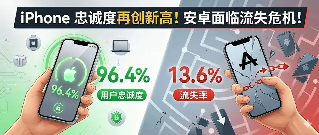 96.4%!iPhone忠诚度创史高,安卓阵营正在经历“中年危机”?