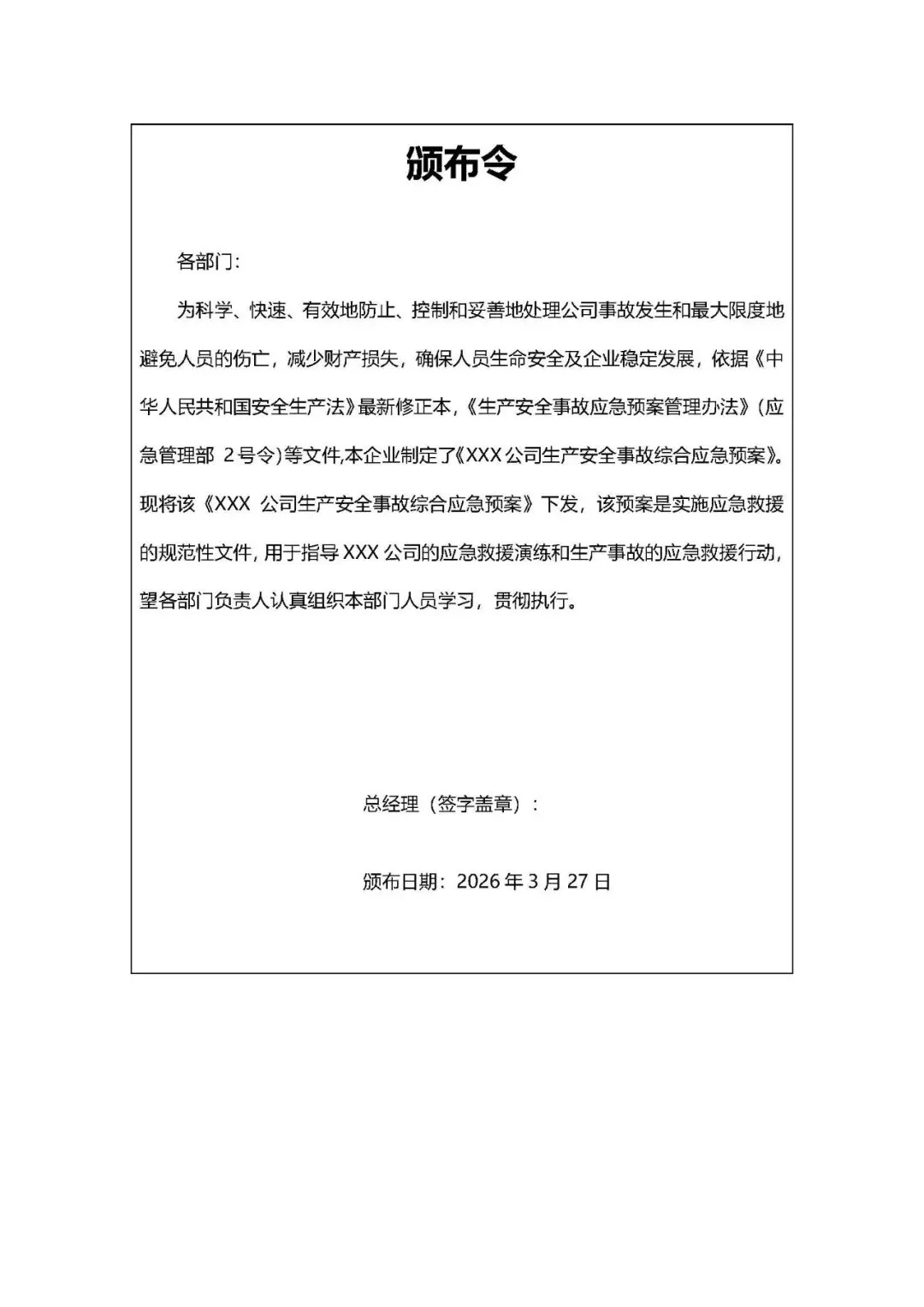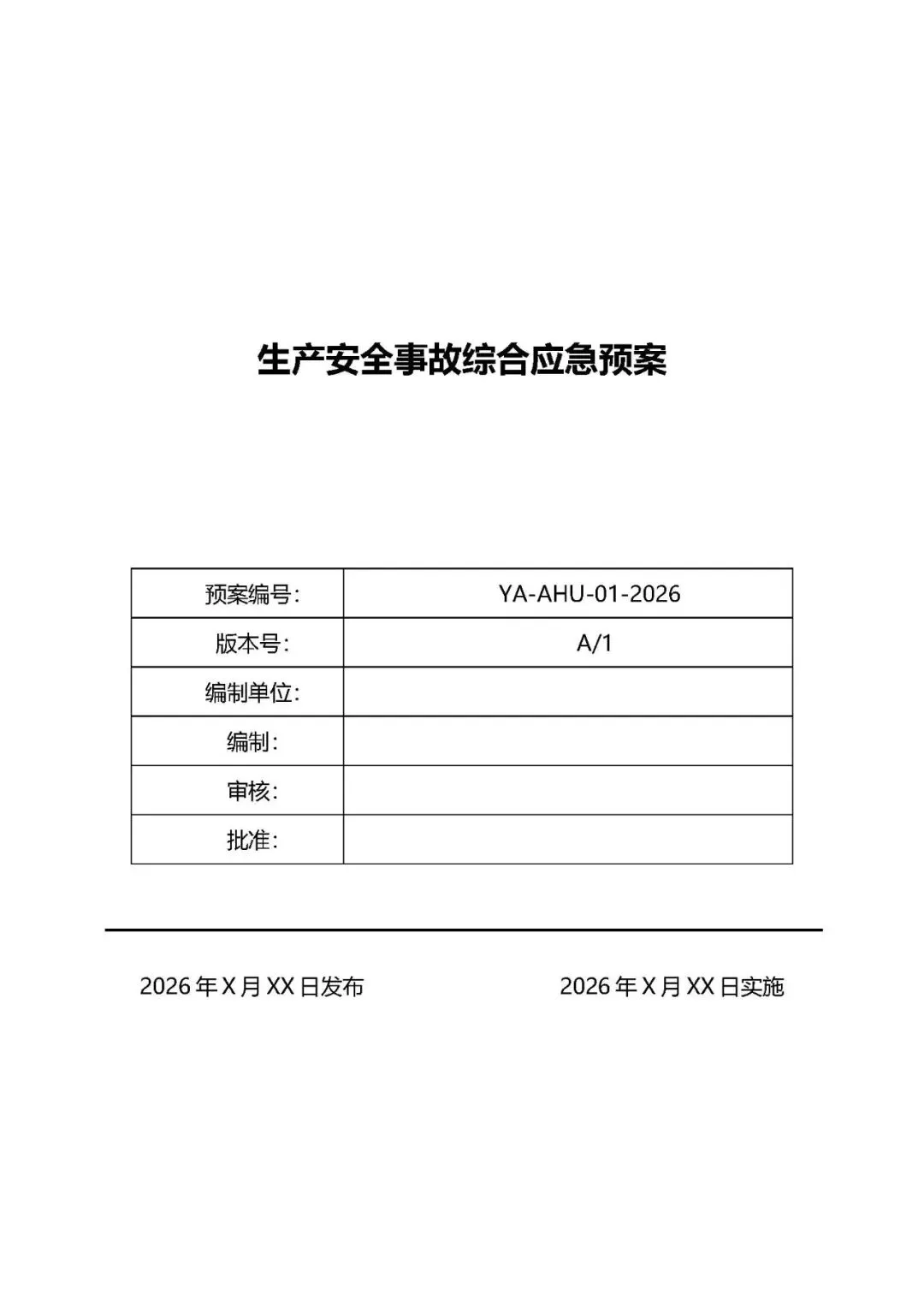 [提醒]本文代码:ABC安全H20260417最新修订版!2026生产安全事故应急预案