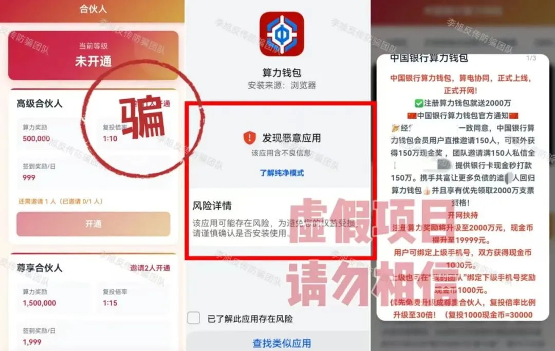 凡是以“国家项目”、“内部福利”、“高额回报”为诱饵,要求通过非官方链接下载APP、提交个人敏感信息、先行垫付资金或不断拉人头的,都要在脑子里立刻敲响警钟。