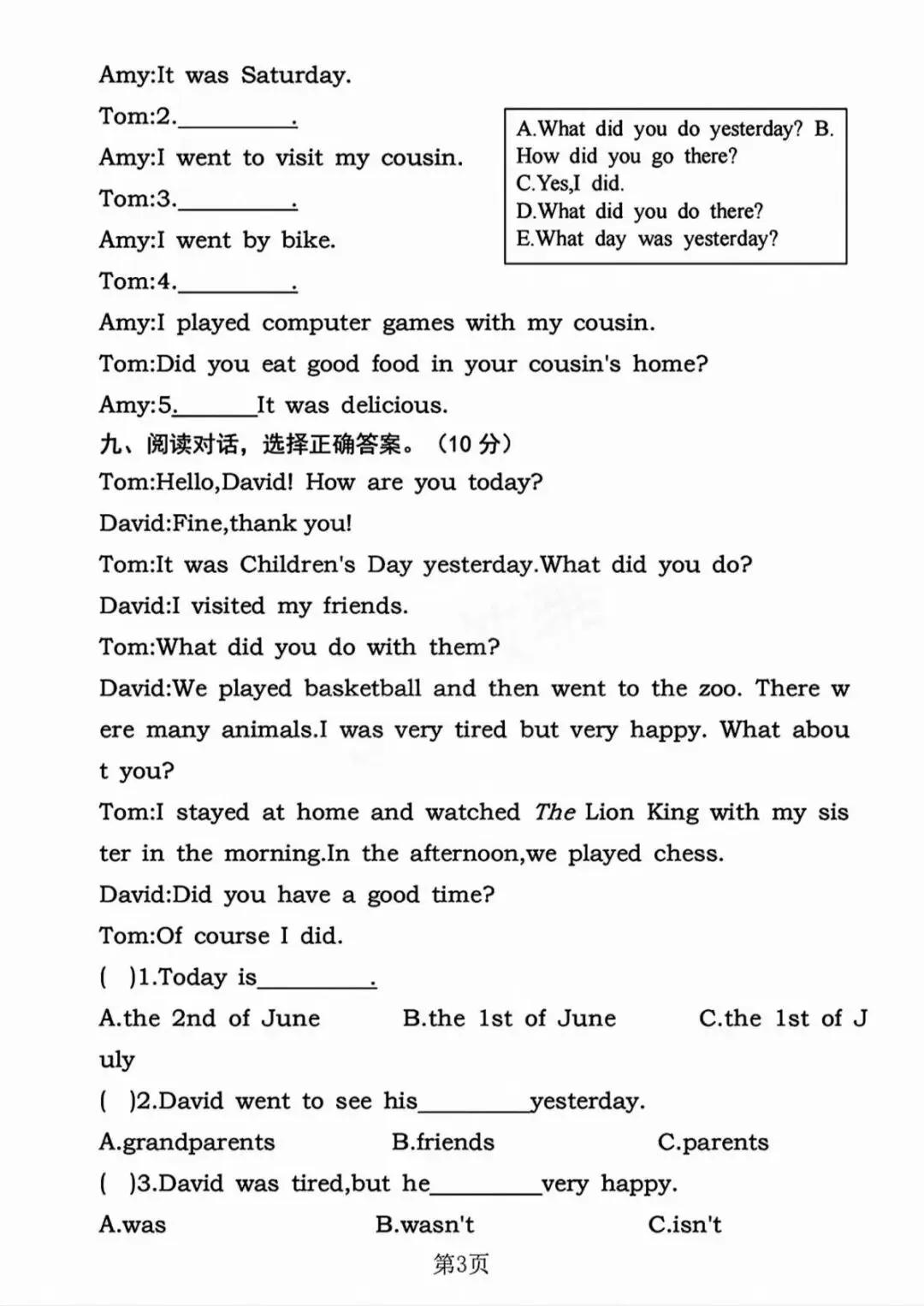 英语期中质量检测卷