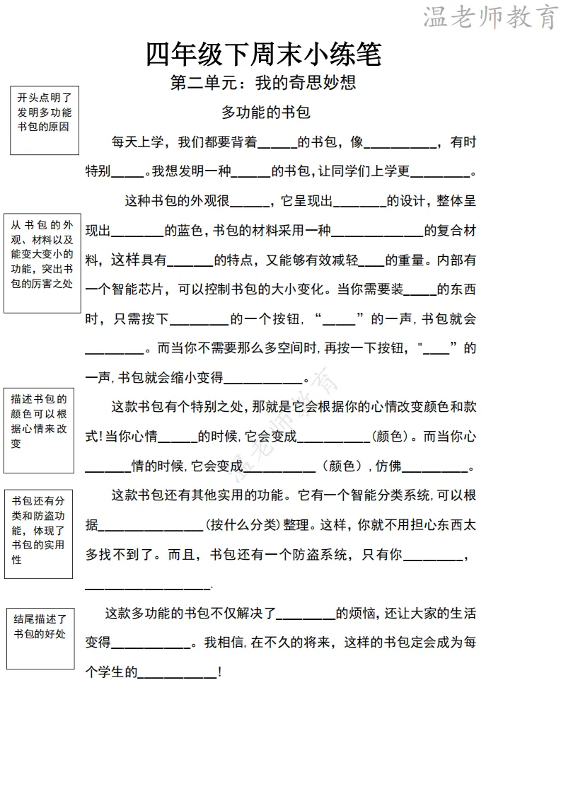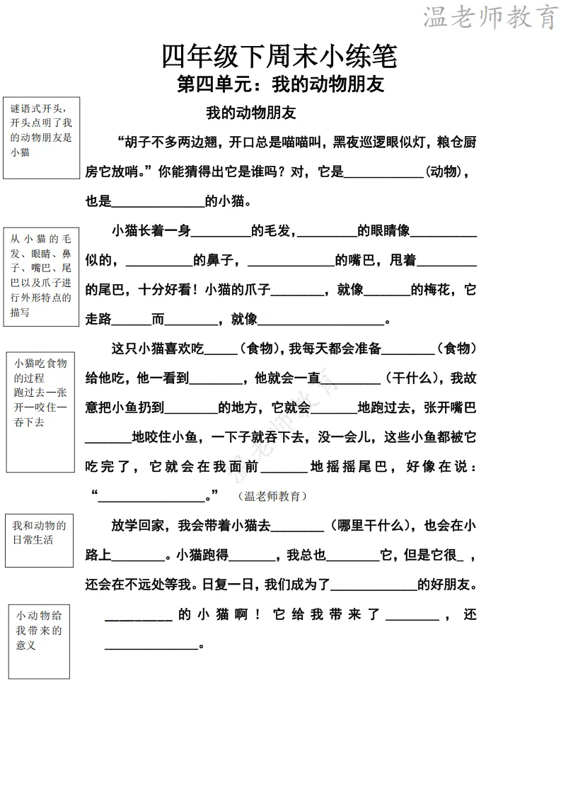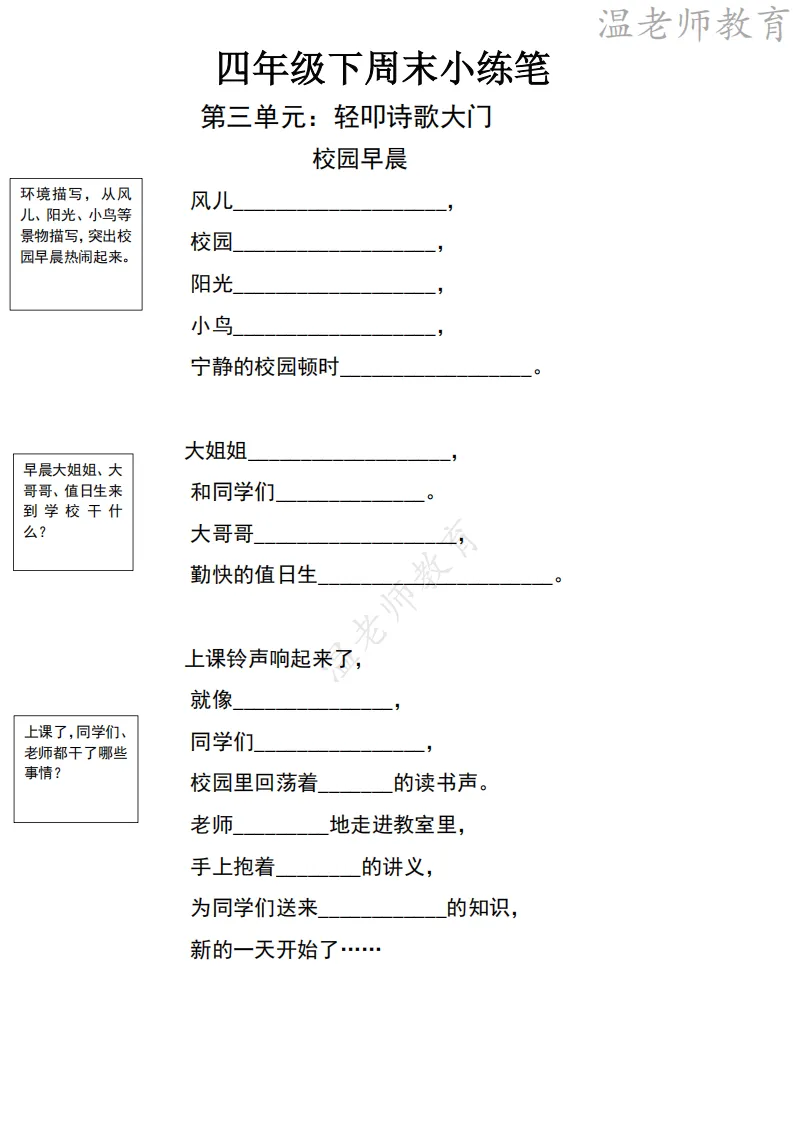 26春四年级下册语文《周末小练笔》|电子版可打印