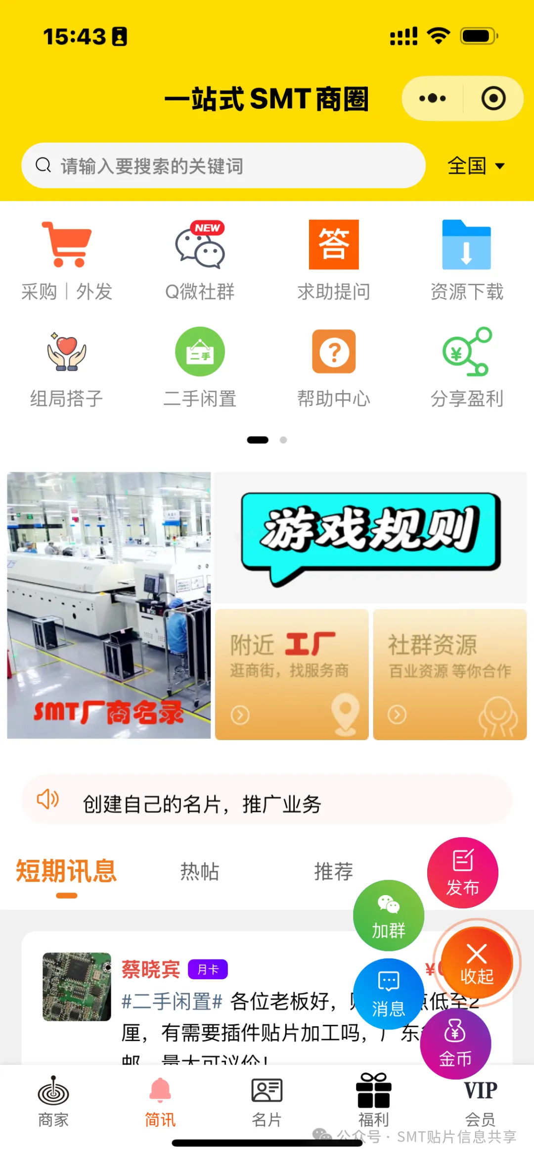 4.选择商家功能按钮,选择右边入驻按钮【如果右边是发布按钮说明还停留在简讯短期信息板块】