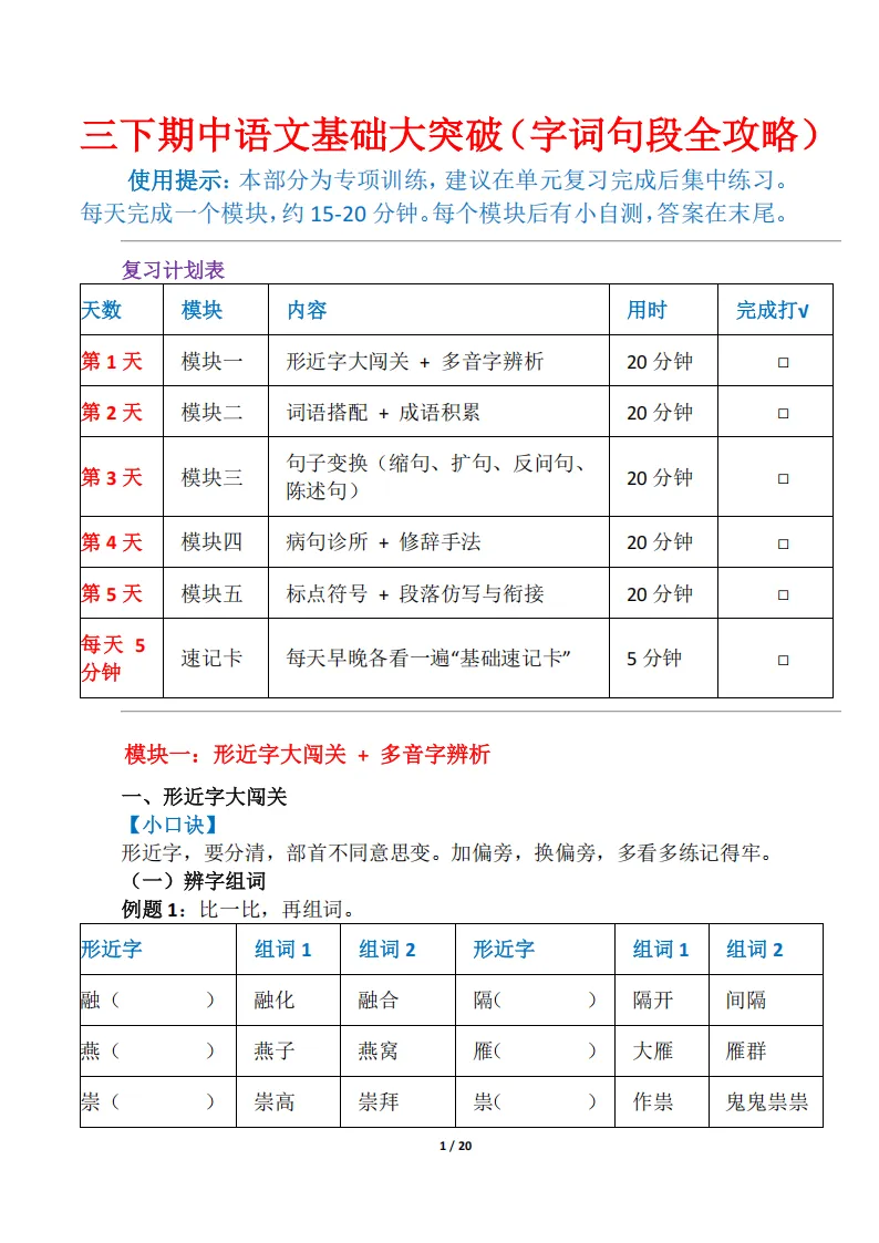 大家好,我是妞妞,专注于1-9年级教育资源分享,今天给大家分享的是:26三下期中基础知识过关,PDF电子版可下载打印。文章末尾可直接领取,✅ 建议收藏+下载,随时给孩子用。💡 如果觉得这份资料对孩子有帮助,欢迎分享到班级群/年级群,让更多家长和孩子受益!🔖 支持正版,让我们一起为孩子提供更优质的学习资源。📚手把手教你打印,又快又好又方便又省钱。