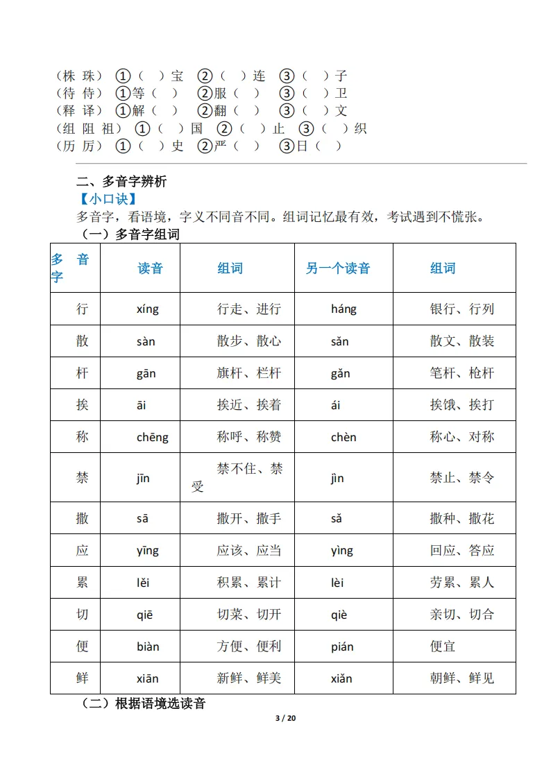 专项练习 I 26三下期中基础知识过关 电子版可下载打印